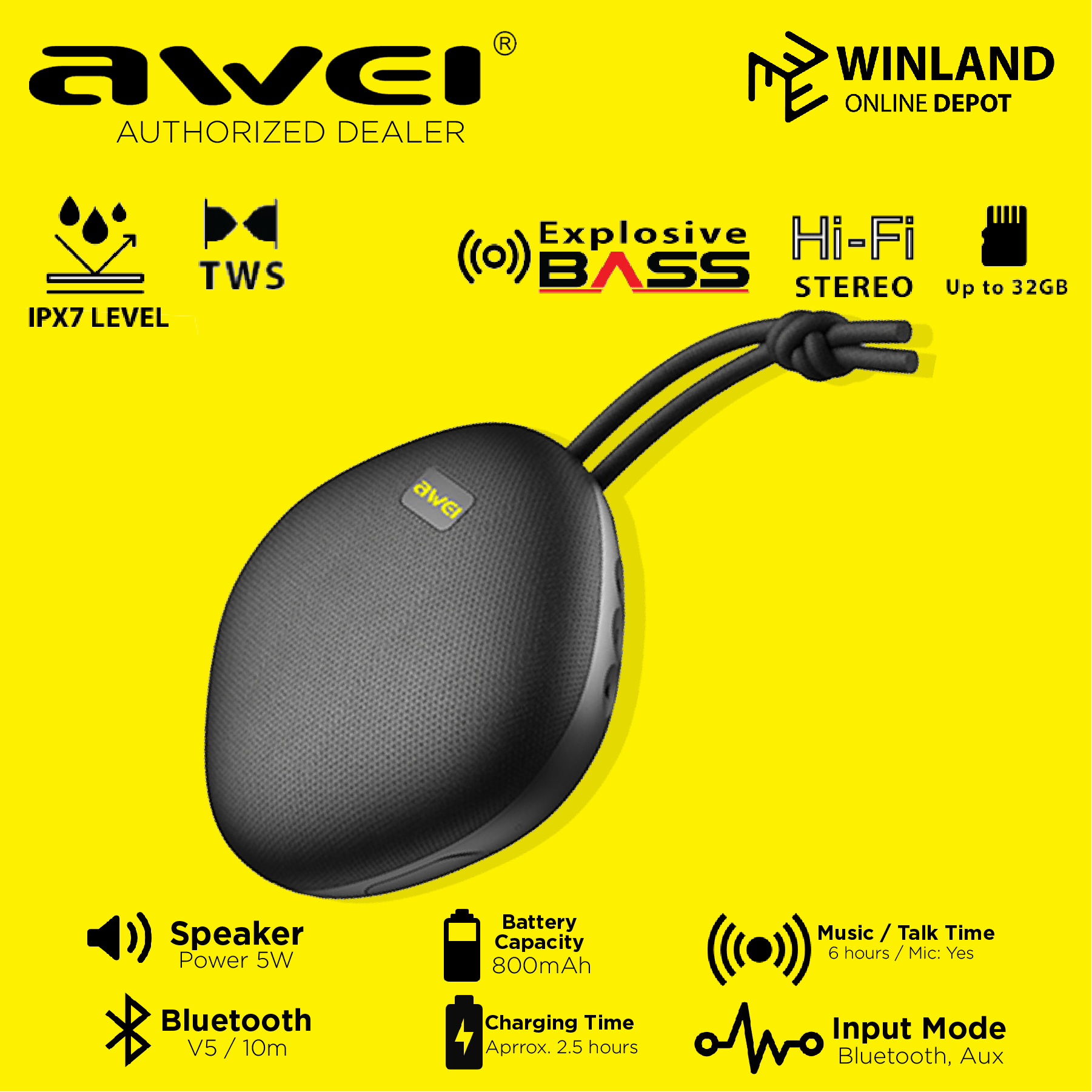 Awei by Winland Mini Portable Bluetooth Wireless Waterproof Speaker Audio Sound with AUX Y336