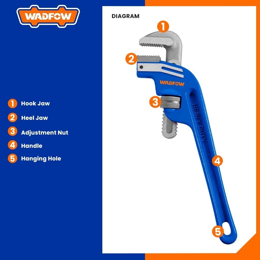 Wadfow Deflection Offset Pipe/Piping Wrench 8inches to 24inches