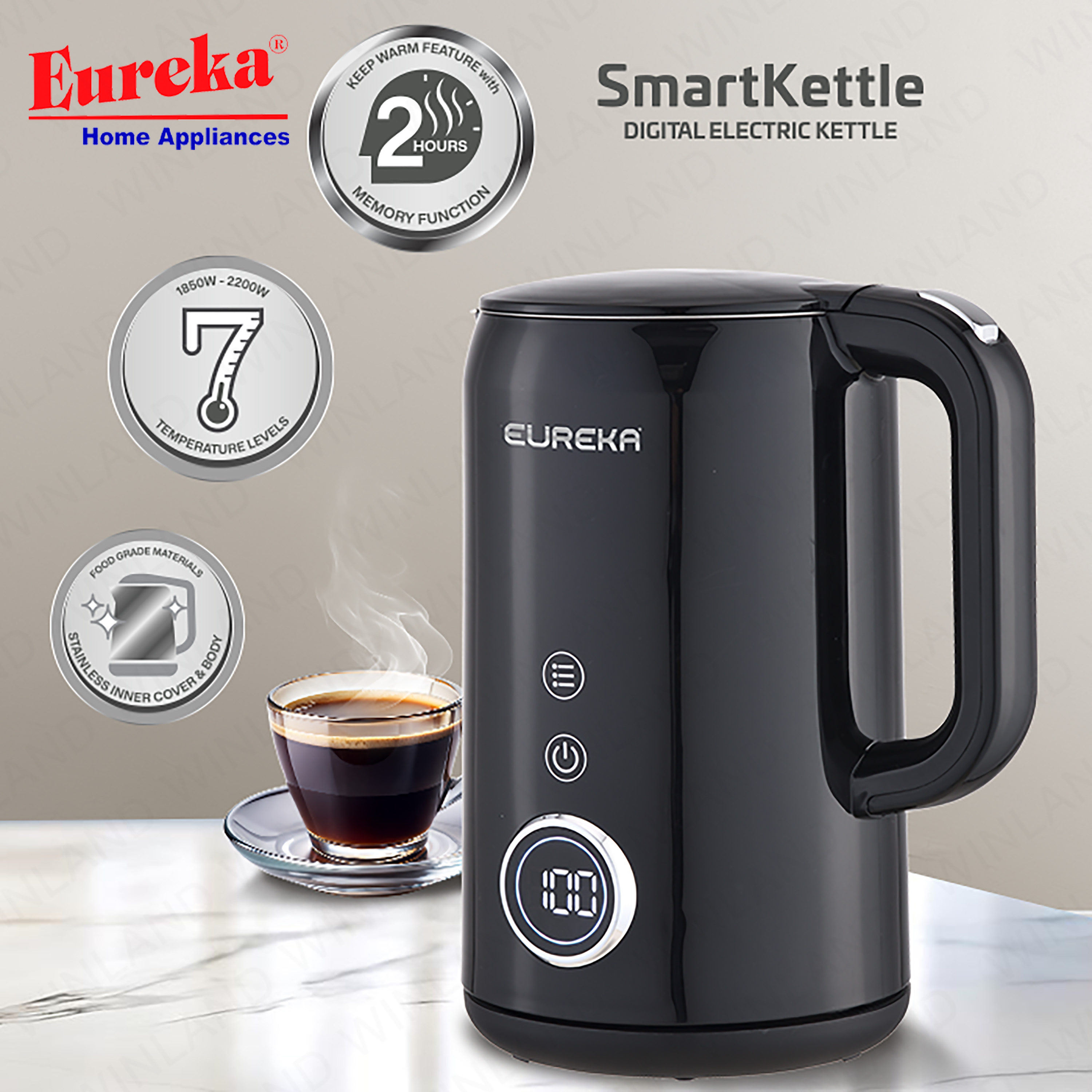 Eureka by Winland 1.7L Smart Digital Electric Kettle with 2-hour Memory Function 2000W EKR-1.7L SD