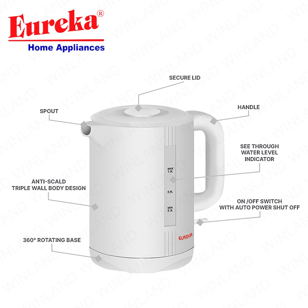 Eureka by Winland 1Liter Electric Kettle Stainless Inner Base See-Through Water Indicator EKR-1.0LW