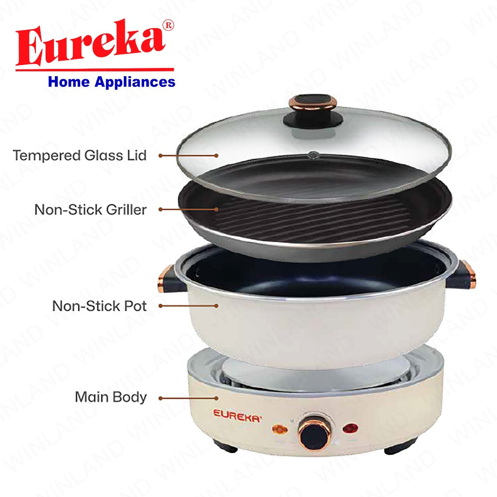 Eureka by Winland 5L Multicooker Non-stick Hotpot with Griller with 6-Cooking Function 1500W EHG-5L