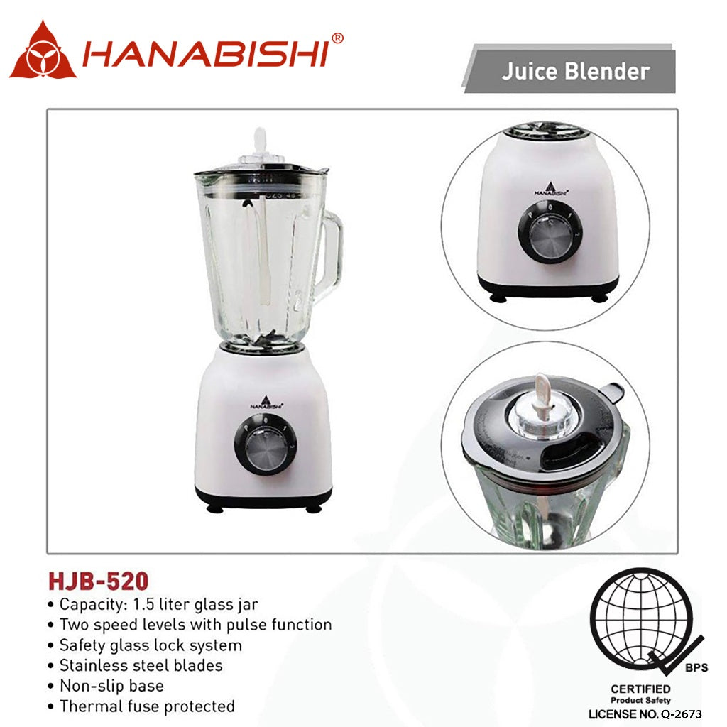 Hanabishi by Winland 1.5Liters Glass Jar Juice Blender 2-Speed Level with Pulse Function HJB-520