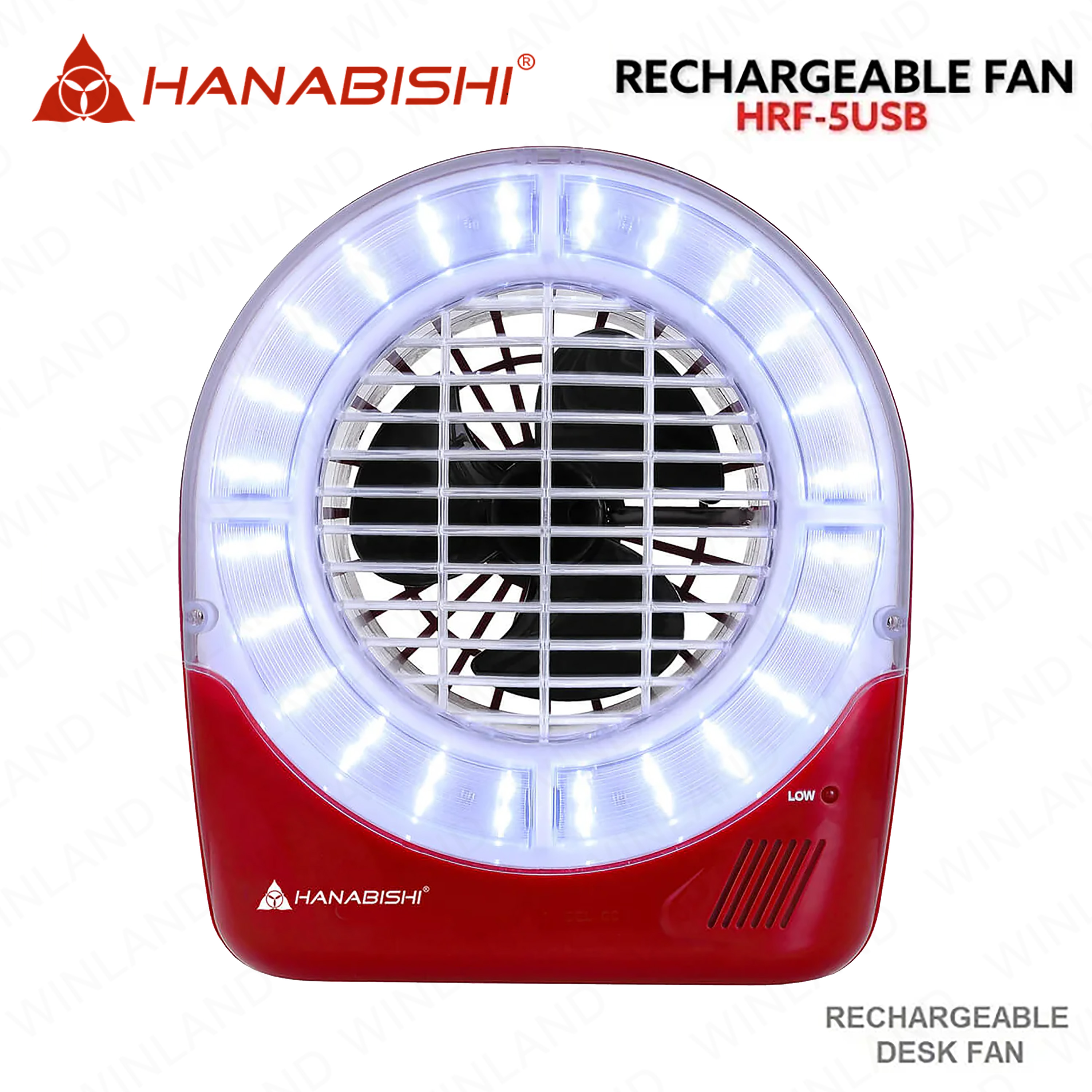Hanabishi by Winland 5inch Rechargeable Fan Portable Handle for Outdoor Use with LED Light HRF-5USB