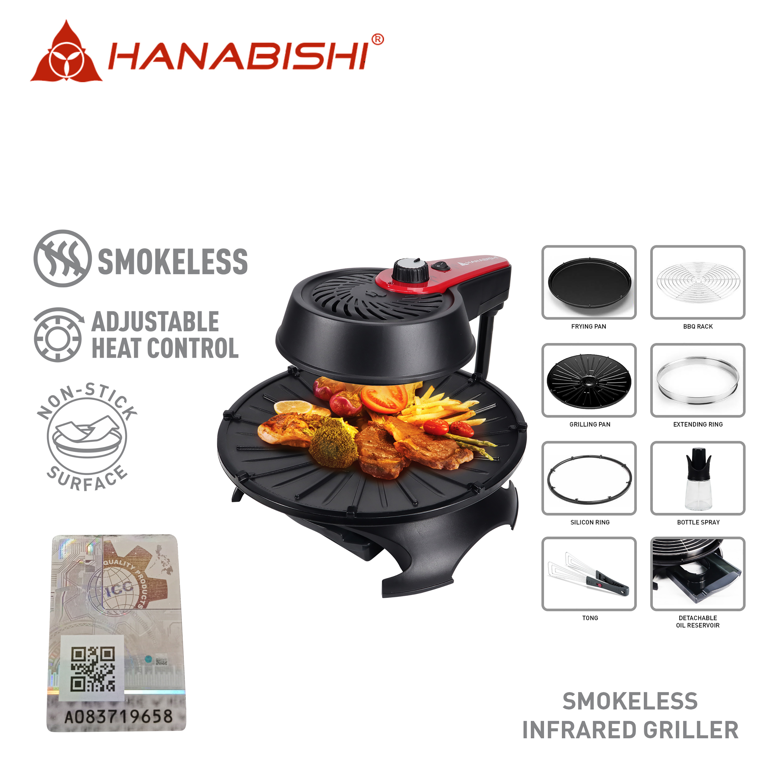 Hanabishi by Winland Smokeless Infrared Griller Automatic 360° Rotation Grill Pan HLRV-INFGRILL725