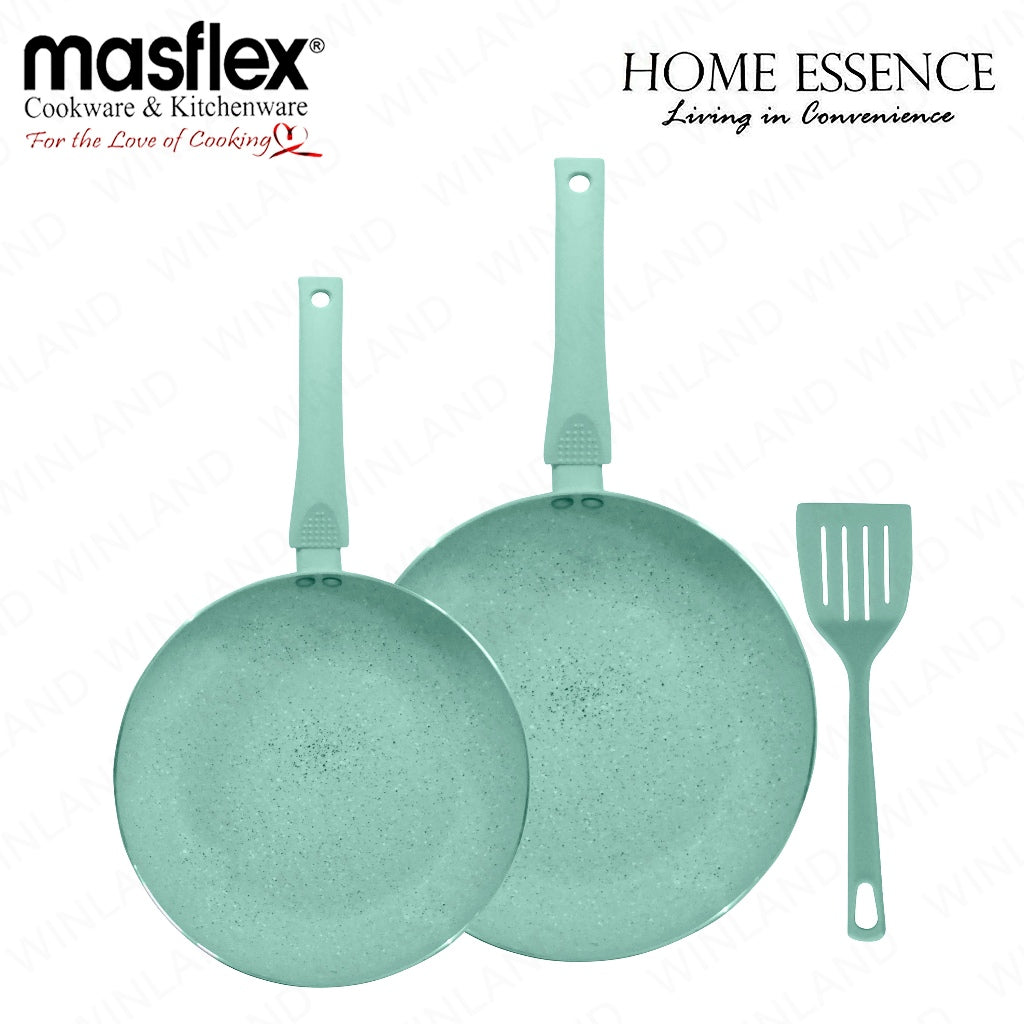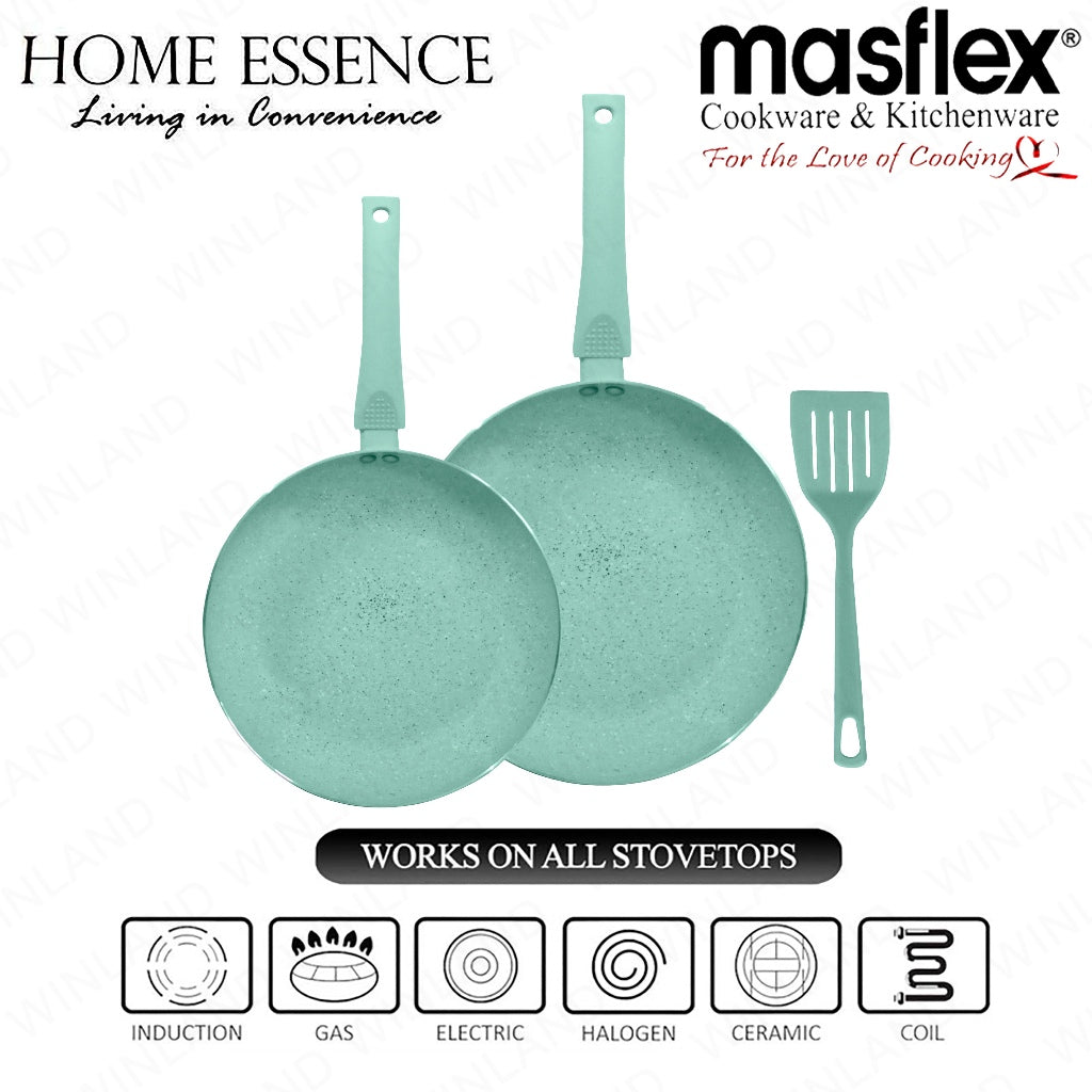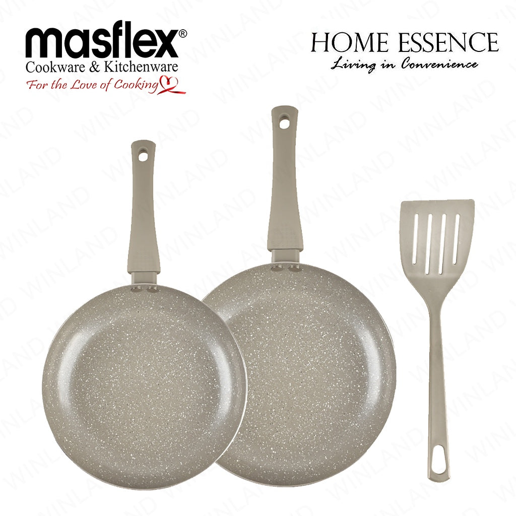 Home Essence by Masflex 3pcs Aluminum Induction Cookware w/ Ceramic Marble Non-Stick Coating Frypan