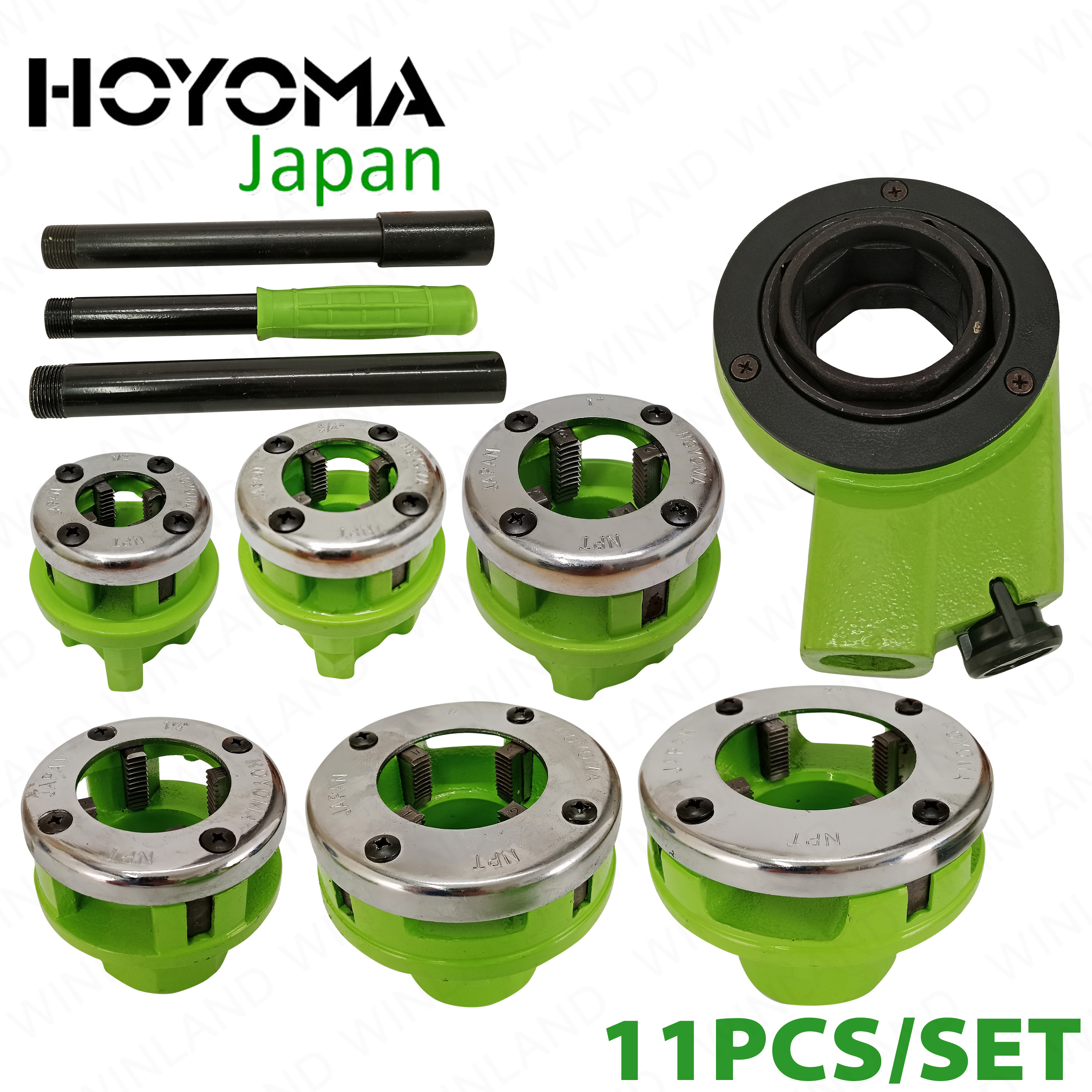 Hoyoma Japan by Winland 11PCS (1/2"-2") Professional Ratchet Die Stocks for Pipe Threader HT-RD11S