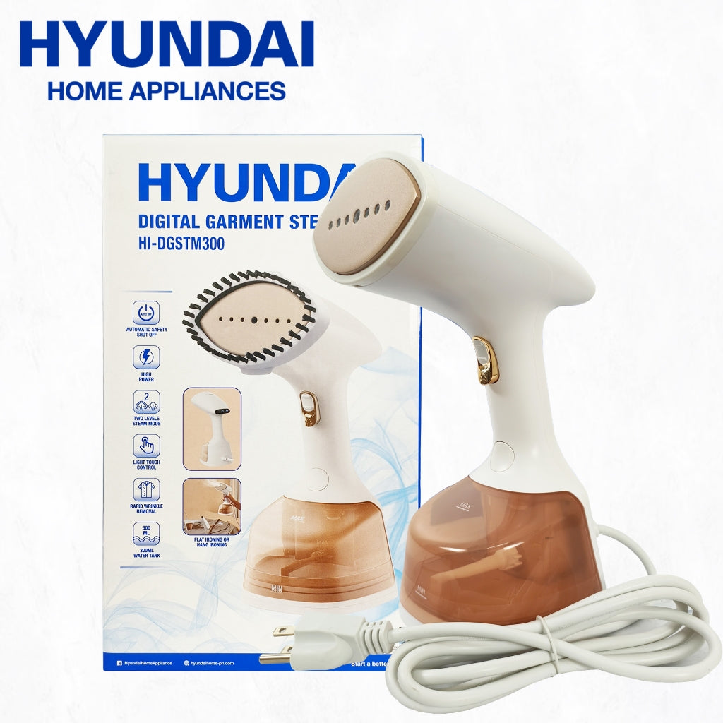 Hyundai Digital Garment Steamer (HI-DGSTM300) Iron offers quick and easy wrinkle removal with its modern design and user-friendly touchscreen control. It features an anti-drip system to prevent leaks, a detachable water tank for convenience, and an automatic shut-off for safety. Suitable for all fabric types, it provides a smooth and efficient steaming experience for everyday garment care.