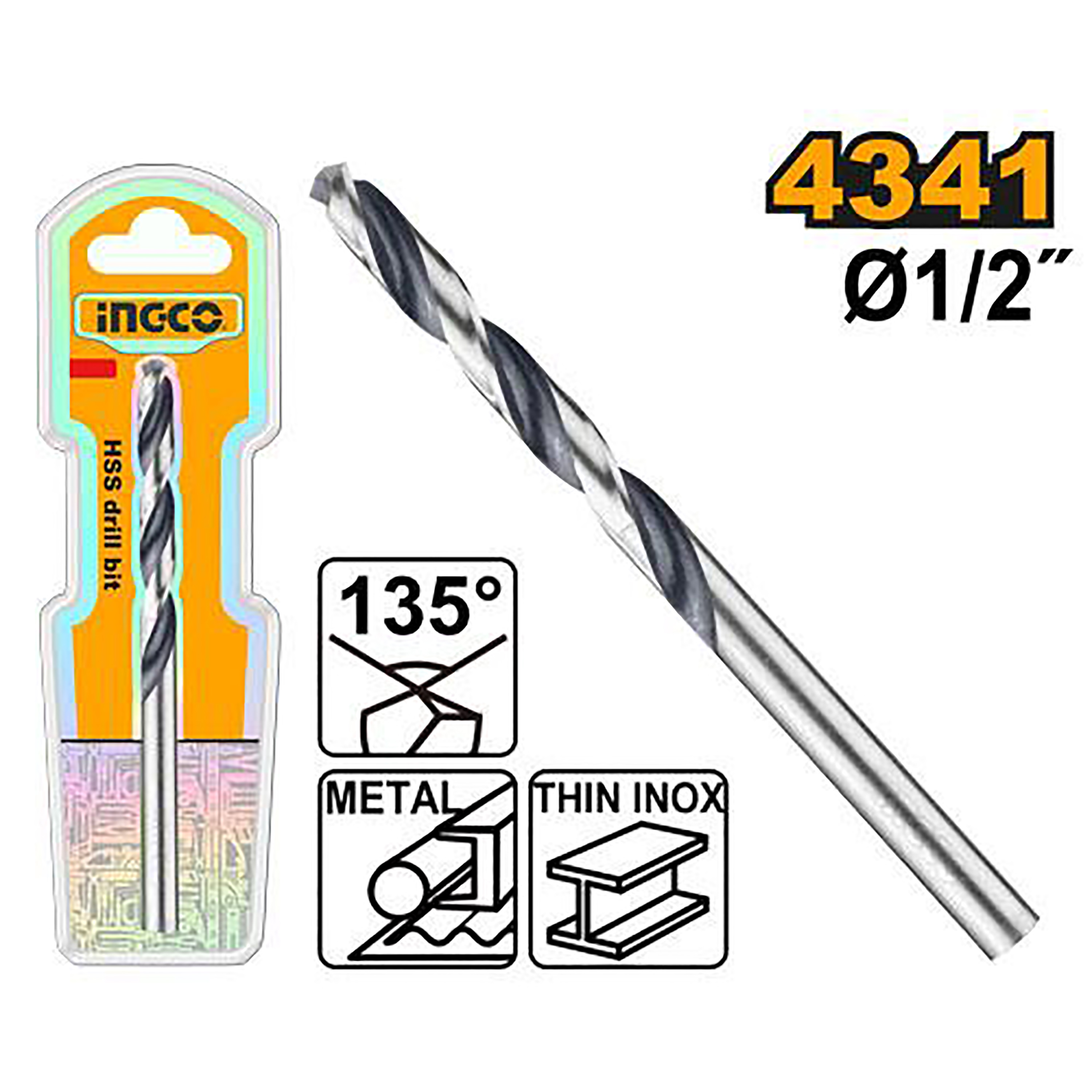 Ingco 1PC/Set Industrial 4341 Hss Drill Bit 1/2inches DBT1200214 ING-HT