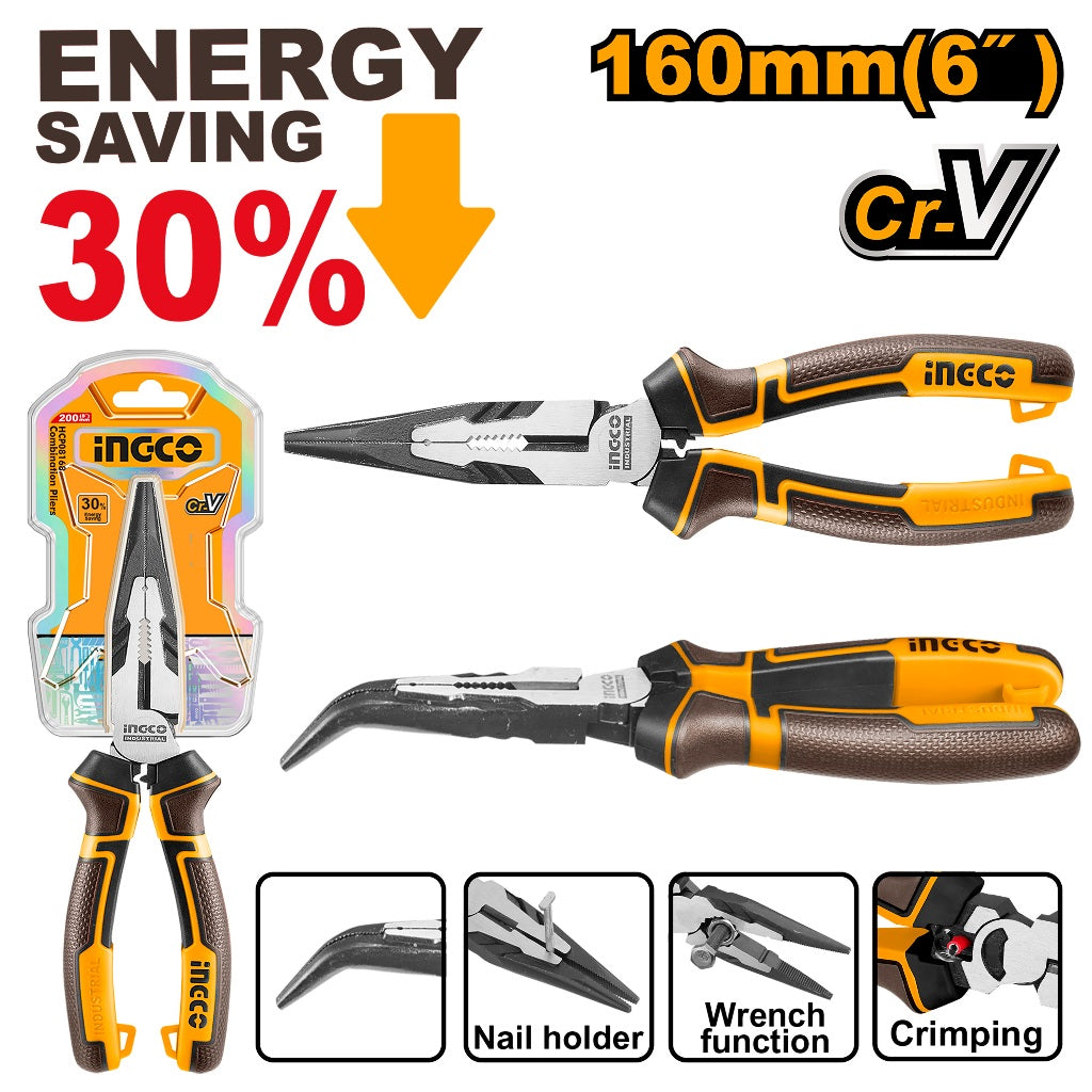 Ingco by Winland 6inches/160mm High Leverage Curved Nose Plier Cr-V Steel Material HHBNP28160 ING-HT