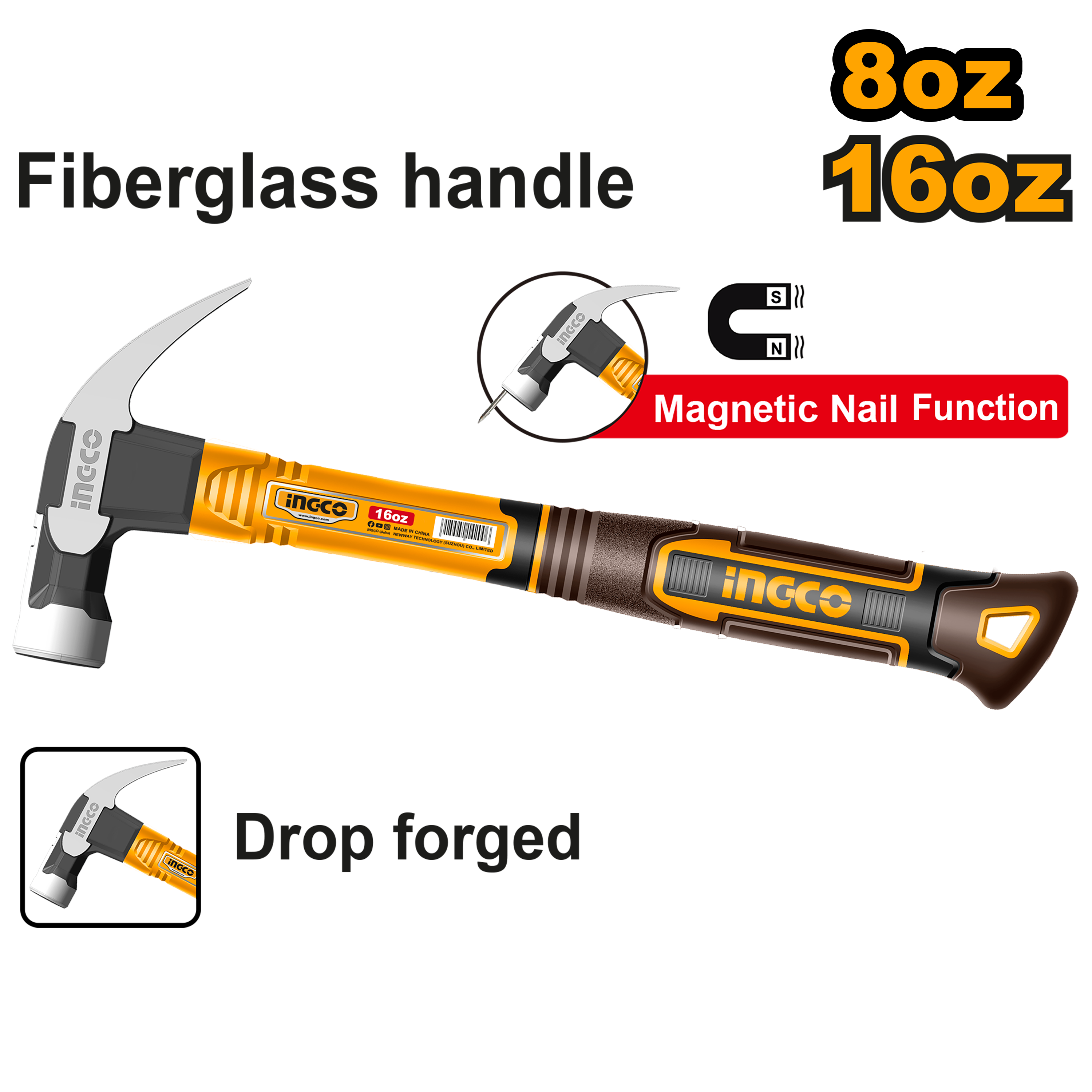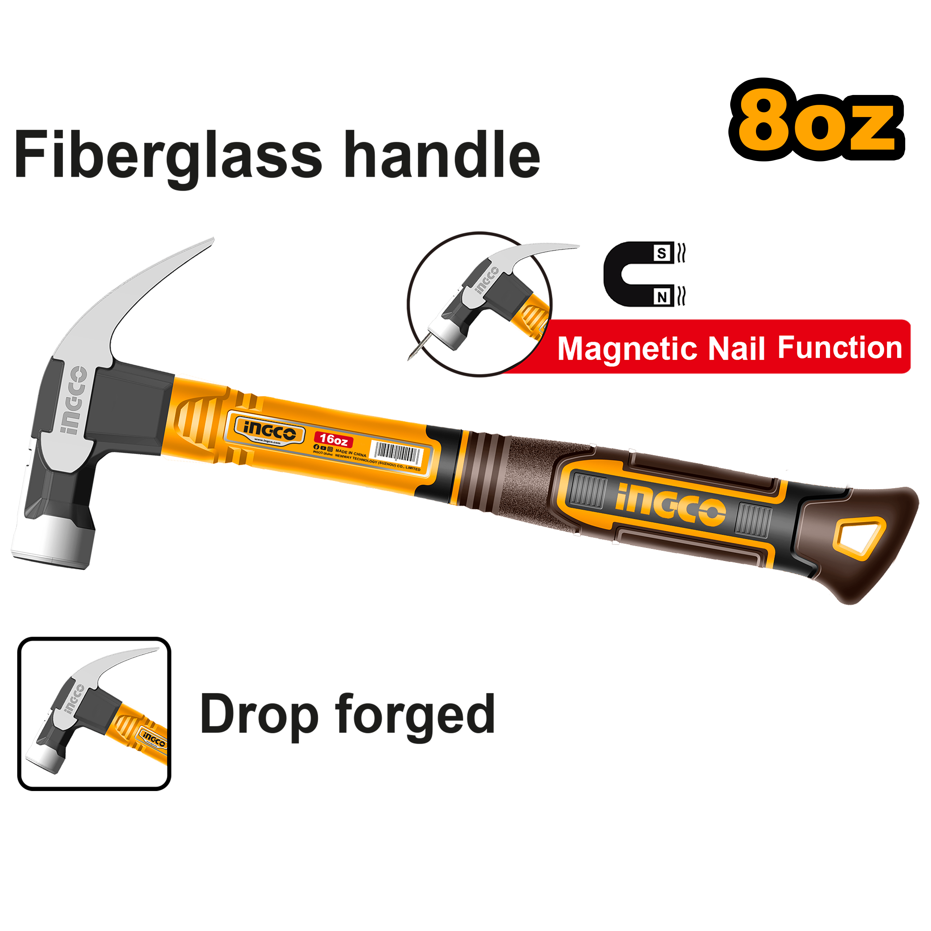 Ingco Ingco Claw Hammer 8oz/220g | 16oz/450g | 20oz/560g Strong Three-Color Fiberglass Handle