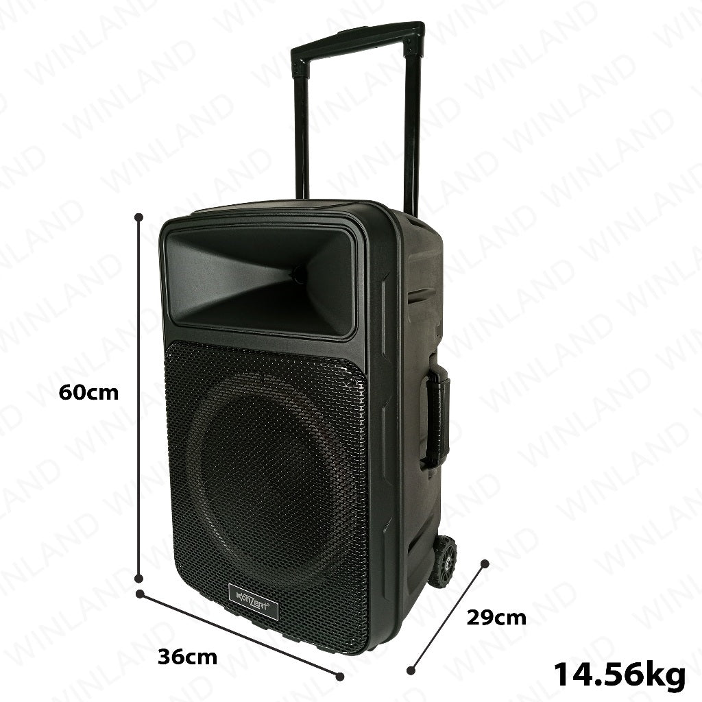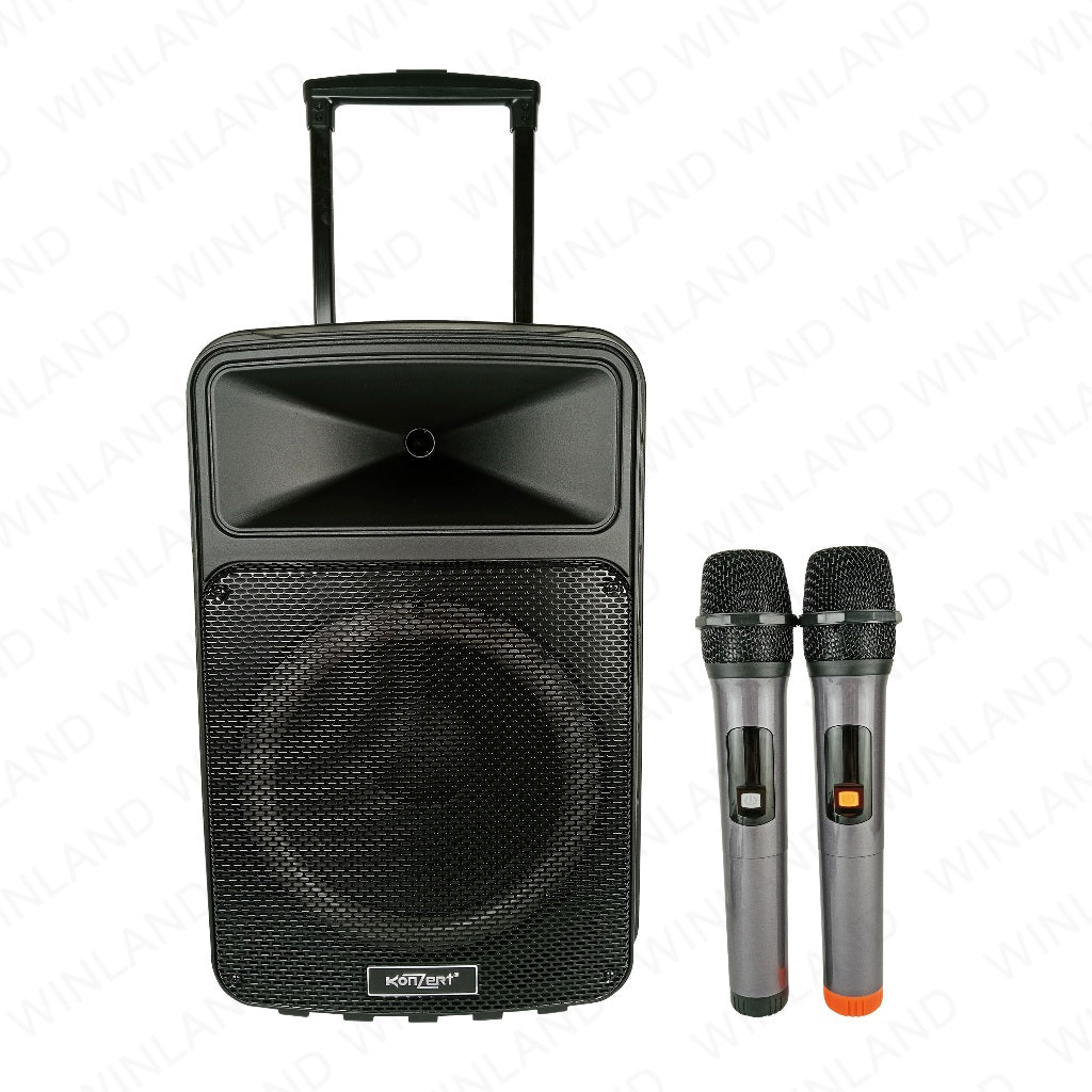 Konzert by Winland 12" 400W Portable Trolley Speaker w/ USB/SD FM Radio BT & 2 Wireless Mic PA-12MK2