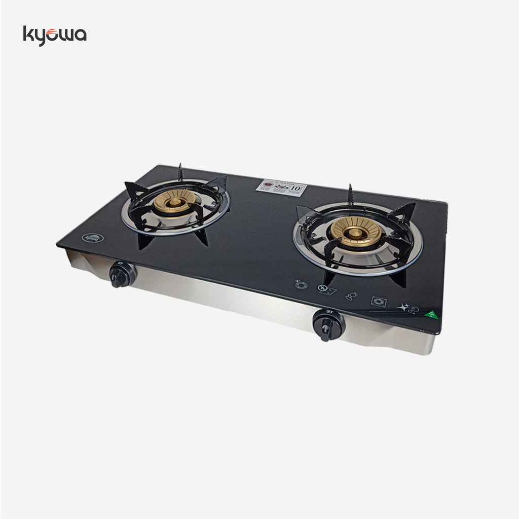 Kyowa KW-3560 Fuel Efficient Glass Top Double Burner Gas Stove (Black)