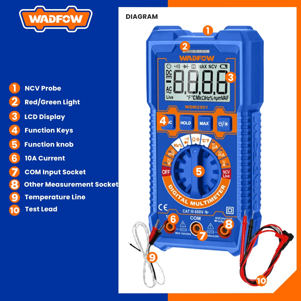 Wadfow LCD Digital Multimeter True RMS 4000-6000 Count WDM2501