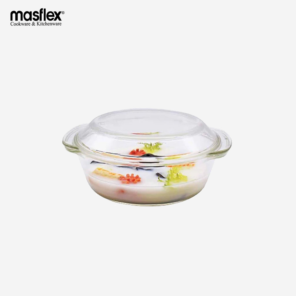 Masflex 1000 ml Borosilicate Glass Casserole with Cover L 20.6 cm x W 18 cm x H 8.5 cm