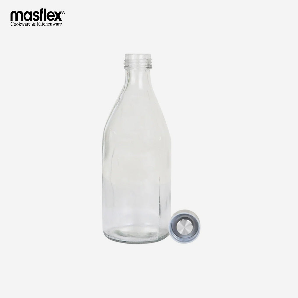 Masflex 1000mL Glass Round Water Container Bottle Pitcher with Silver LID QM-7721