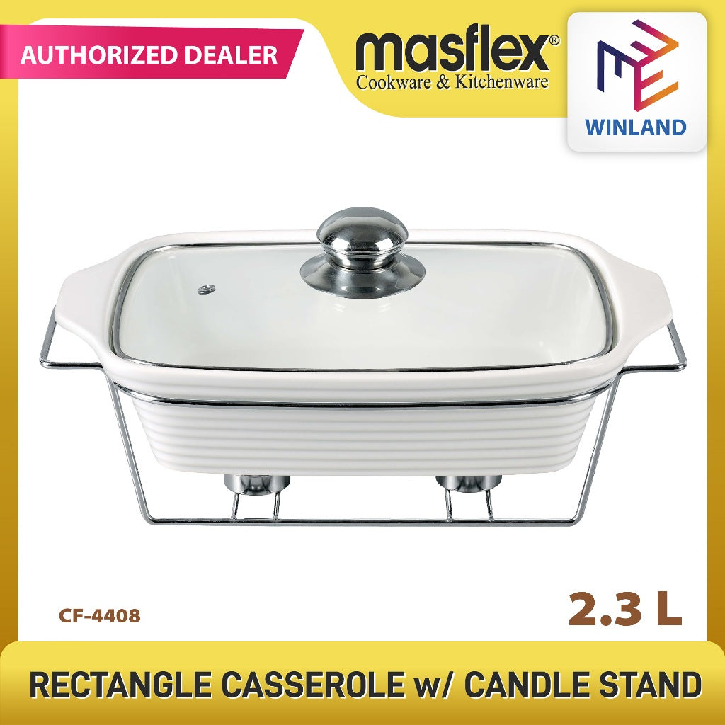 Masflex by Winland 2.3 Liters Glass Rectangular Casserole Food Warmer with Candle Stand CF-4408