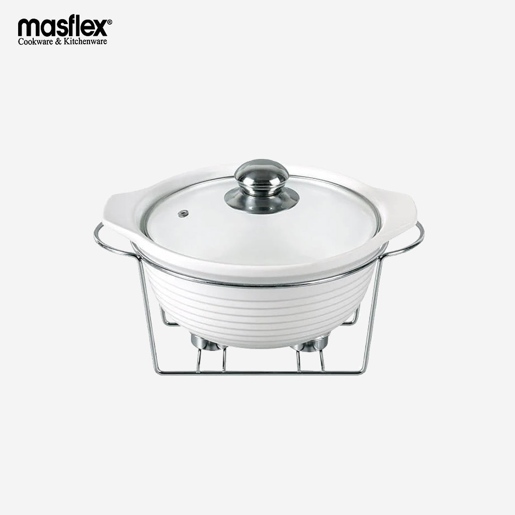 Masflex 2.5L Ceramic Round Casserole Food Warmer w/ Candle Stand Microwave Safe CX-66