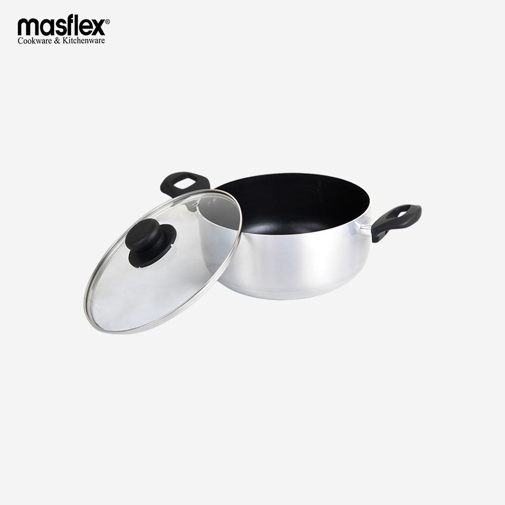 Masflex 20cm Aluminum Satin Series Non Stick Induction Casserole With Glass LID BB-20CS