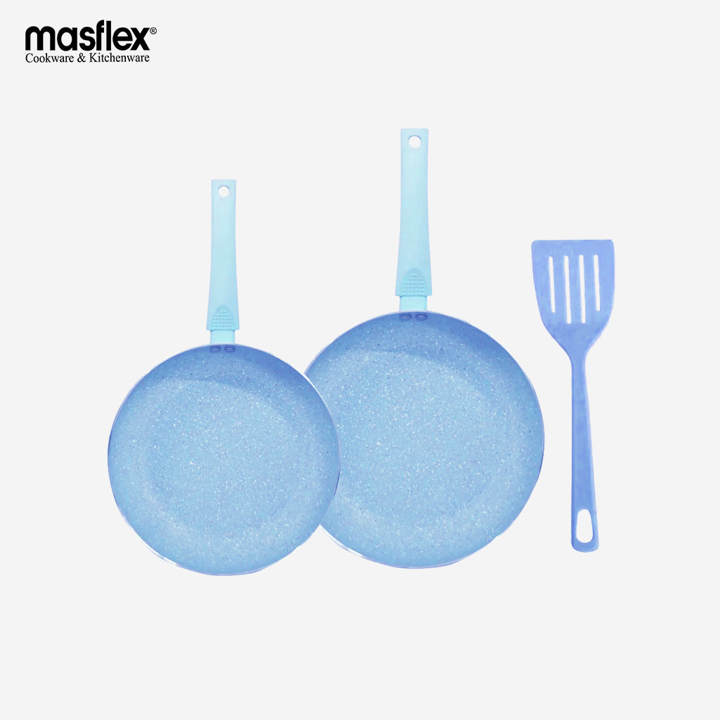 Masflex 3pcs Aluminum Induction Cookware with Ceramic Marble Non-Stick Coating Frypan Set