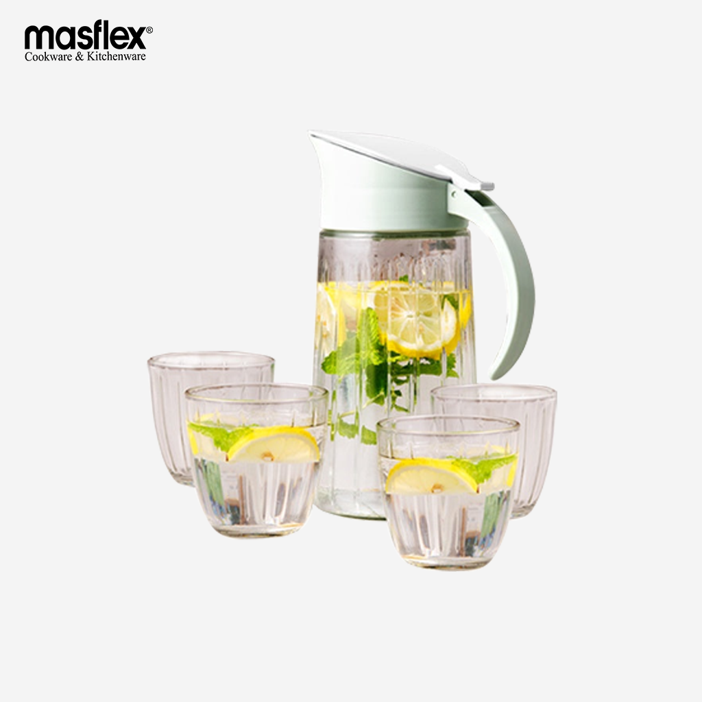 Masflex 5 piece Delight Glass Pitcher Set (Pitcher-1.2 Liters / Glass–200 ml) GB-SQH/L5