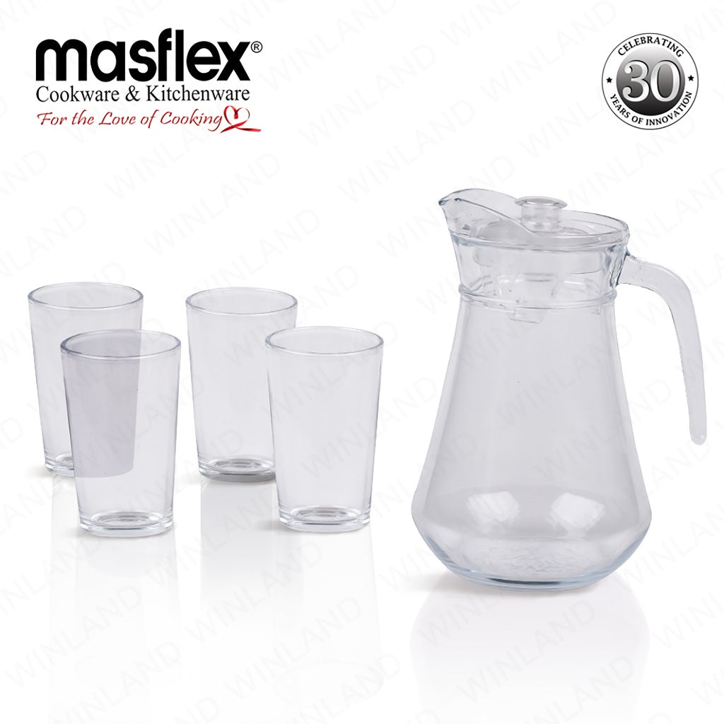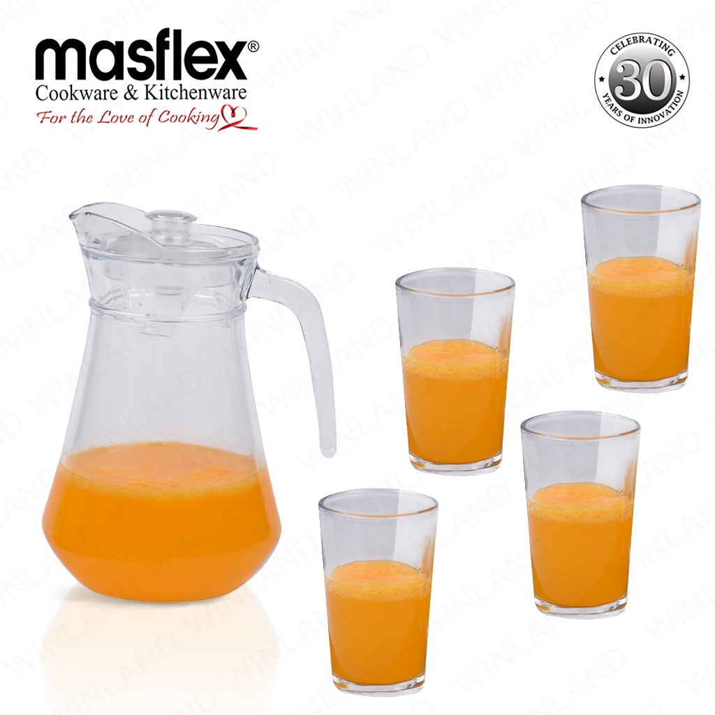 Masflex by Winland 5-Pieces Diamond Glass Pitcher with Durable & High-Quality Glass Set ZW-3435B