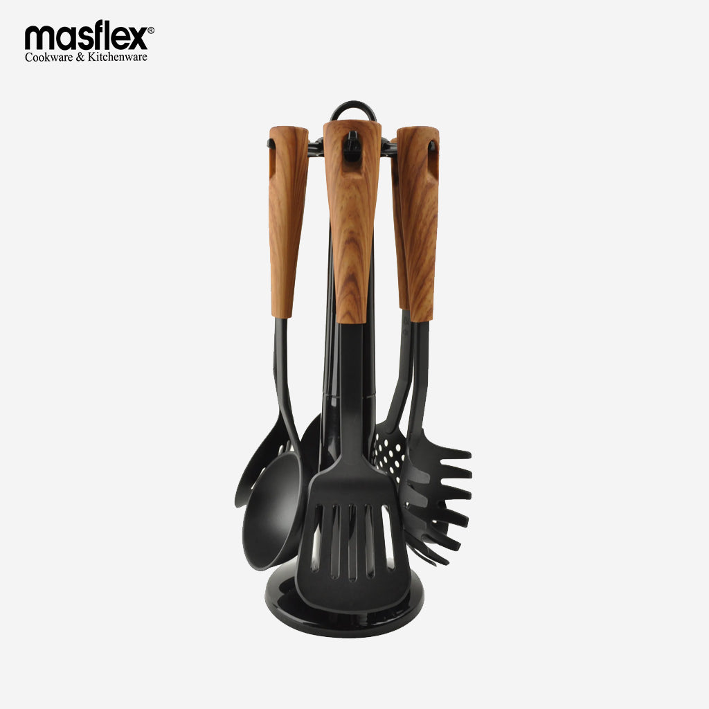 Masflex 6 Piece Utensils Set with Rack Soup Ladle Spoon Turner Spaghetti Server HI-963