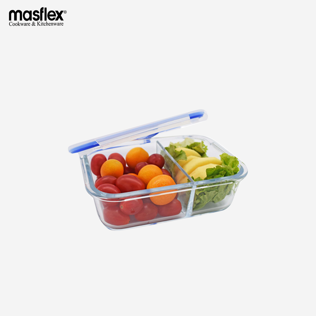 Masflex 640ml Rectangular Glass Food Container W/Division 100% Hygienic & Food Safe FE-24