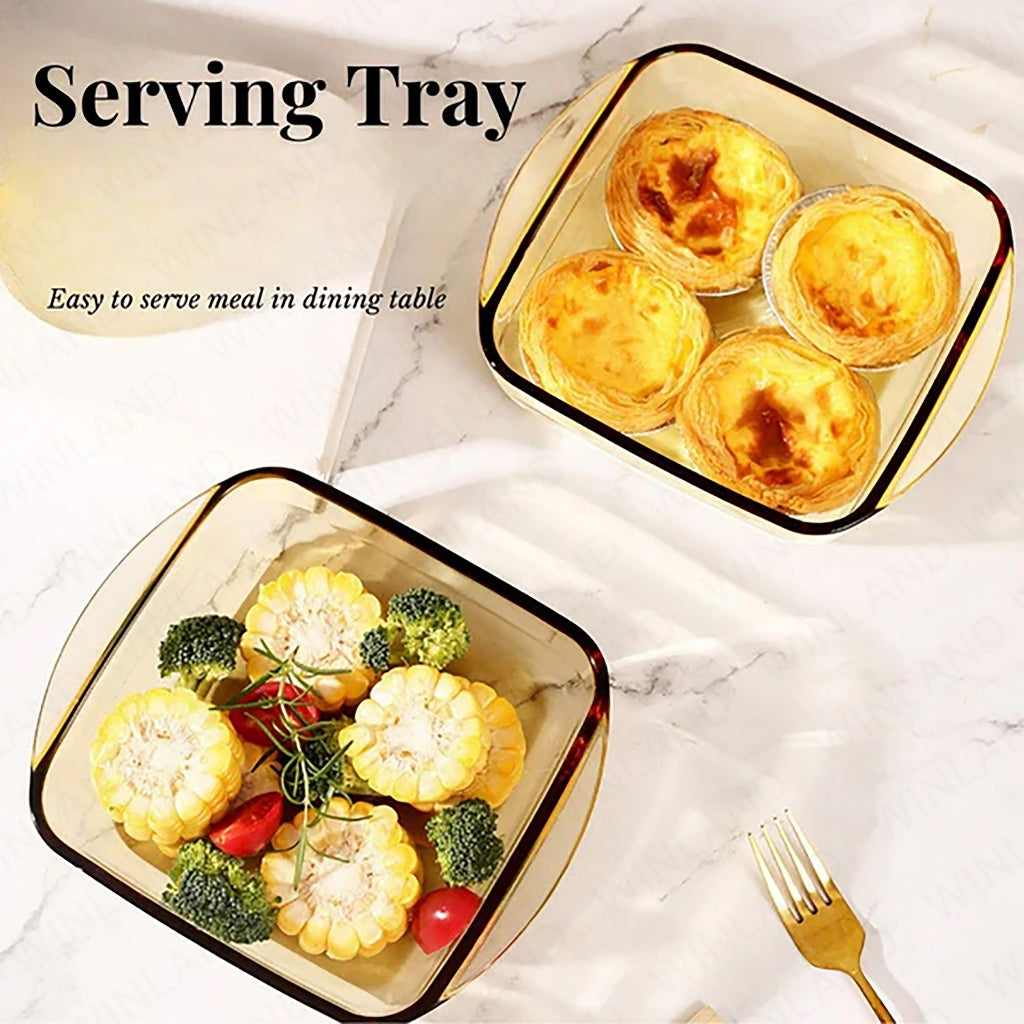 Masflex by Winland 800ml Amber Rectangular Borosilicate Glass Bakeware w/ Handle Baking Dish SI-B080