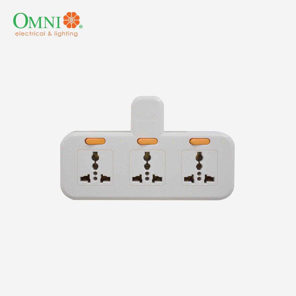 Omni 3-Gang Wall Universal Adaptor Socket 10A w/ Individual Switch & Indicator WUA-032