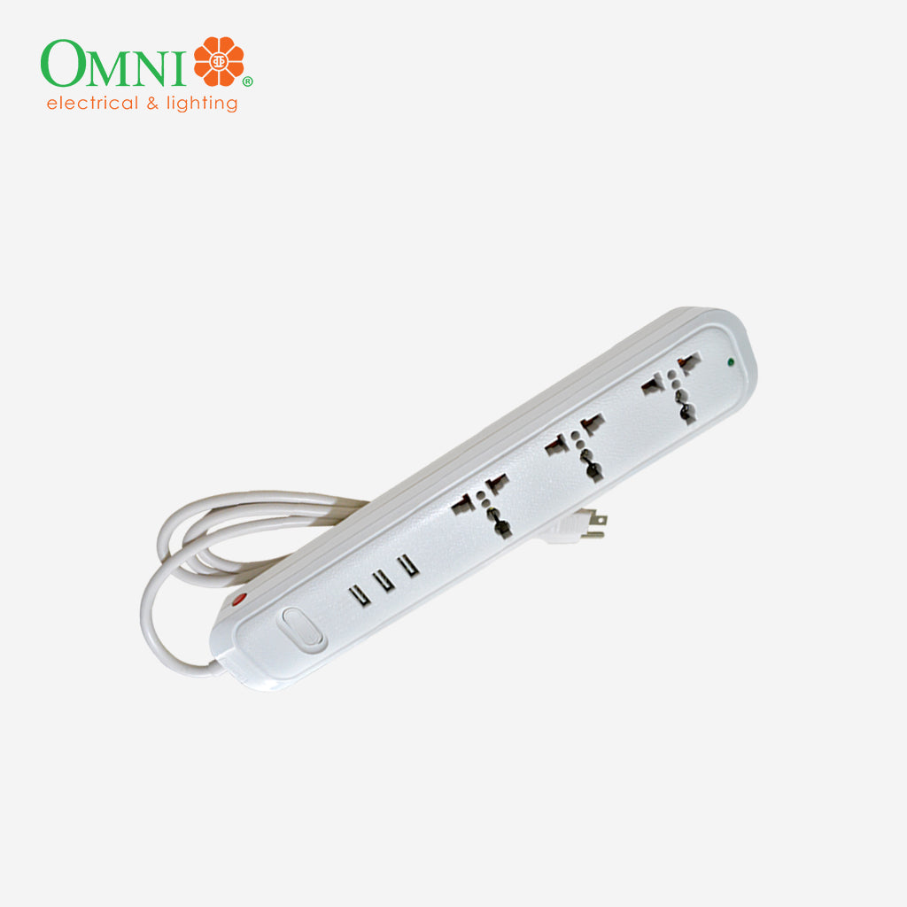 Omni Travel Power Extension Wire Cable Cord 3 Gang w/ 3x USB Outlet 1.83M USB-303