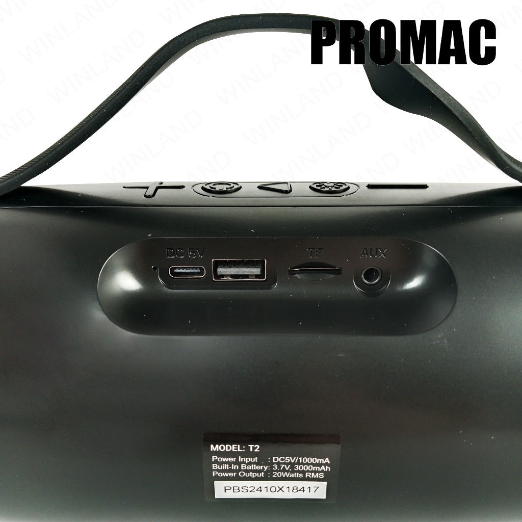 Promac by Winland Portable Bluetooth Speaker USB/TF MP3 Playback, FM Radio with LED Light T2(PROMAC)