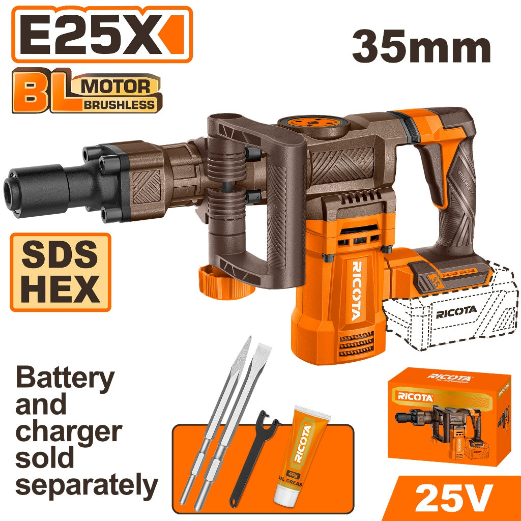 Ricota E25X Brushless Cordless Demolition Breaker 25V 16J with 3 Function & SDS HEX Chuck System