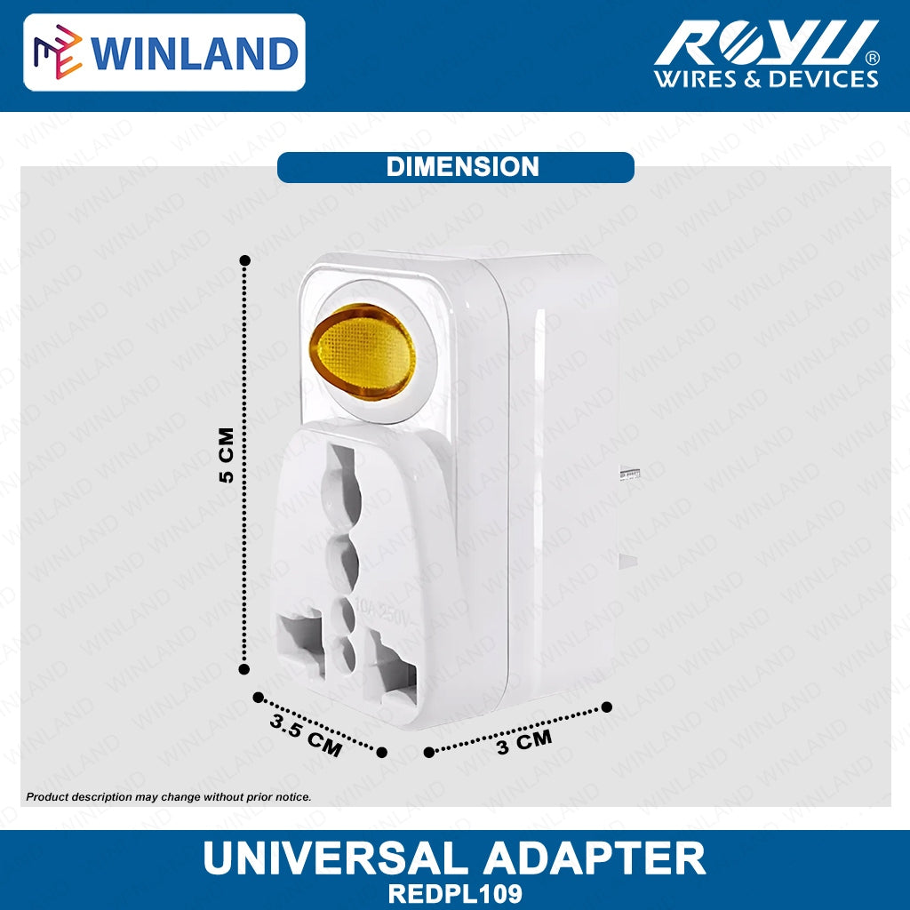 Royu 10A 250v Universal Adapter/Adaptor with Switch & 2-USB Port REDPL109