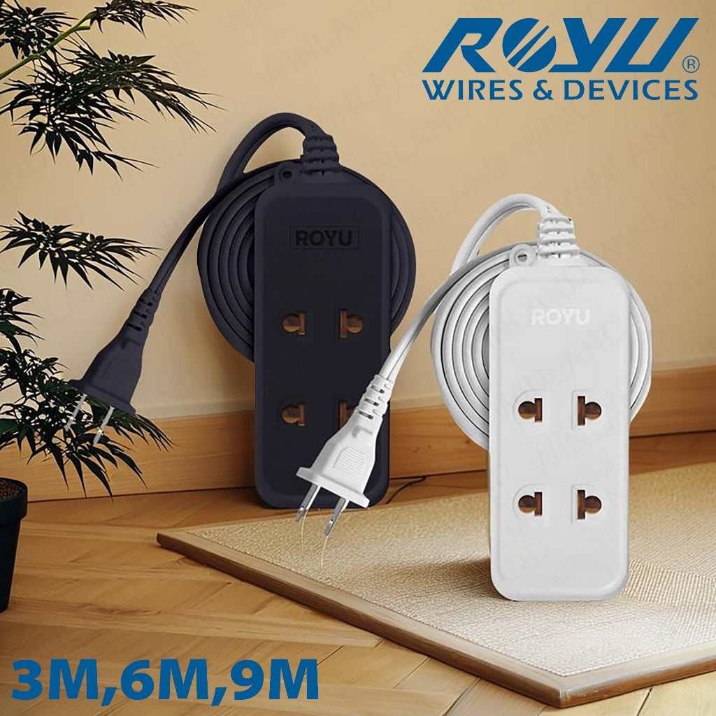 Royu by Winland 2 Universal Outlet + 1 Flat Pin Extension Cord (3M | 6M | 9M Extension) REDEC113