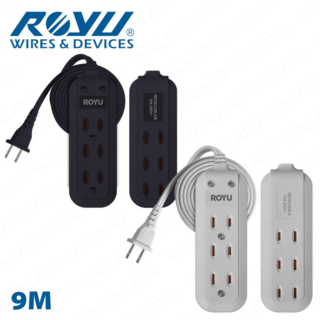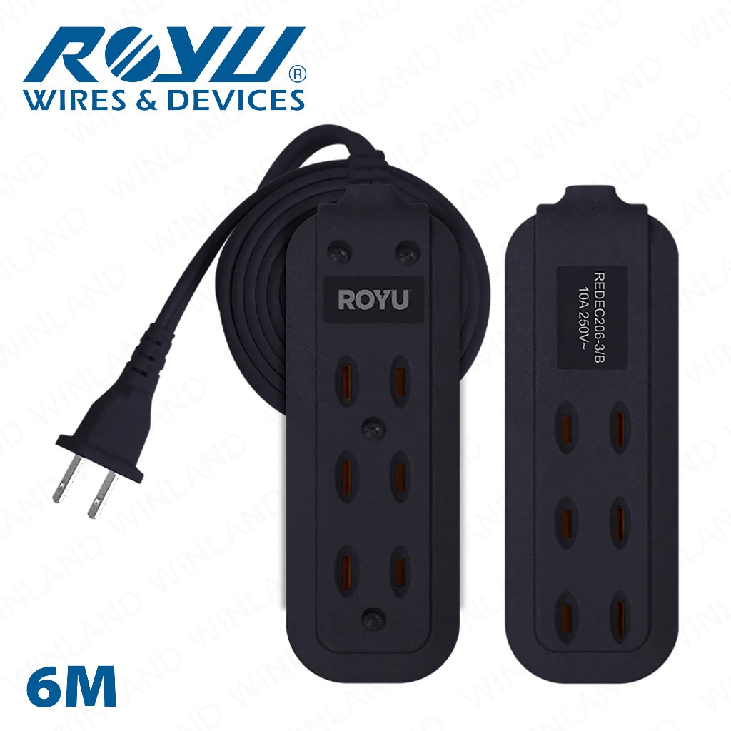 Royu by Winland 3 + 3 Gang Flat Pin Extension Cord (6M | 9M Extension Cord 250V/10A) REDEC206