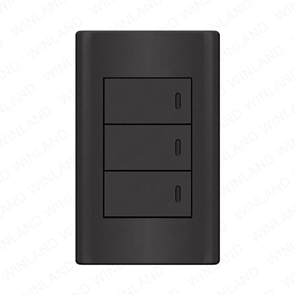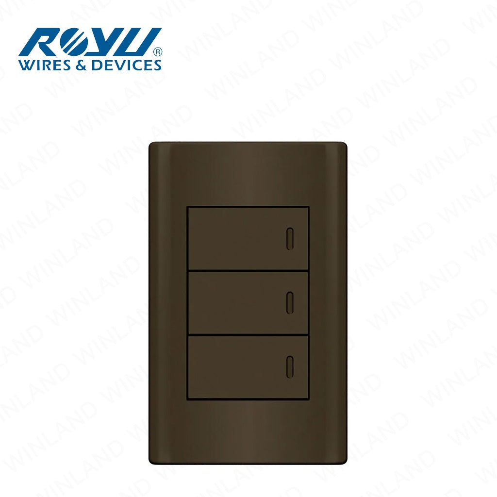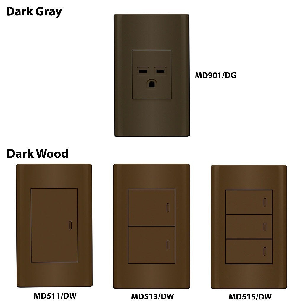 Royu by Winland Plano Series 1, 2, 3 Gang Switches Set, Outlets, Dark Wood & Dark Gray