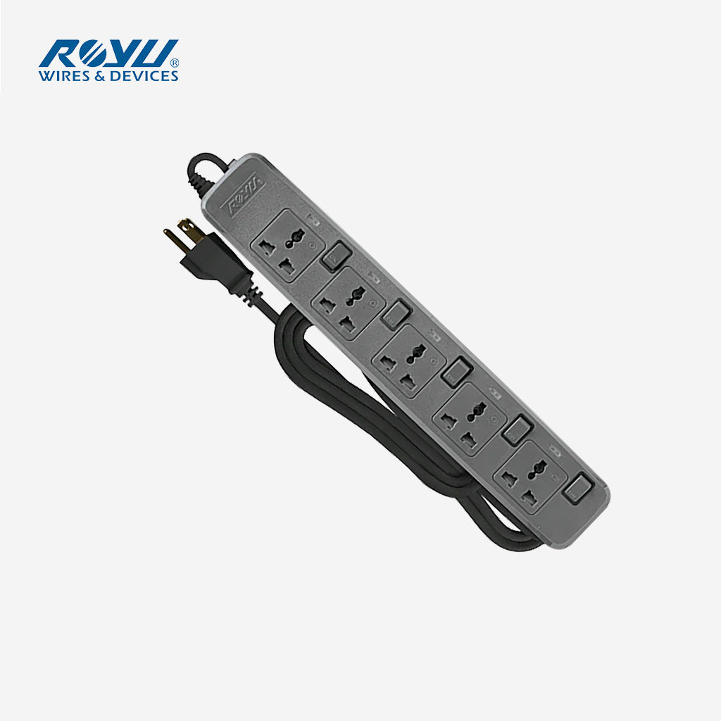 Royu Power Extension Cord Cable 2 meter 5 Outlets with Individual Switches REDEC705