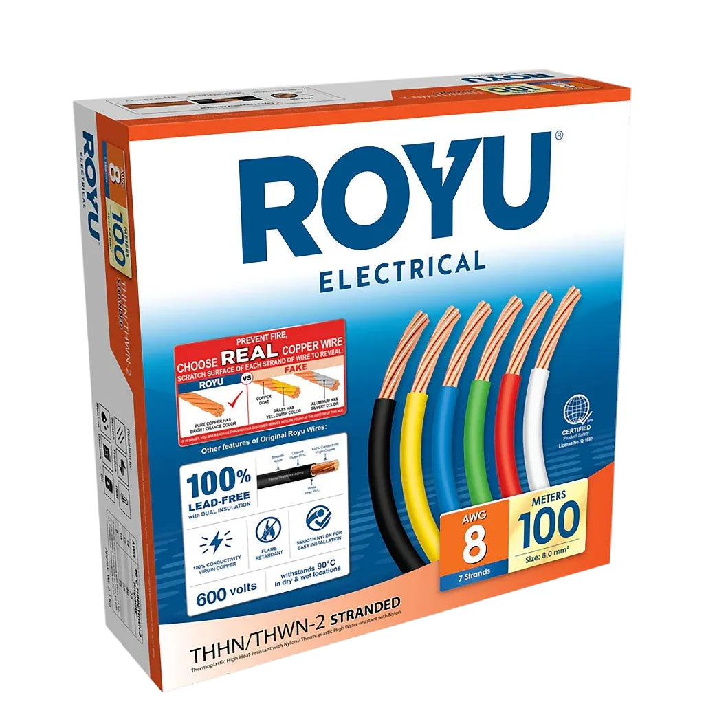 Royu by Winland THHN/THWN Stranded Wire 8.0mm2 08-AWG Stranded 100 meters Pure Copper RTN8A