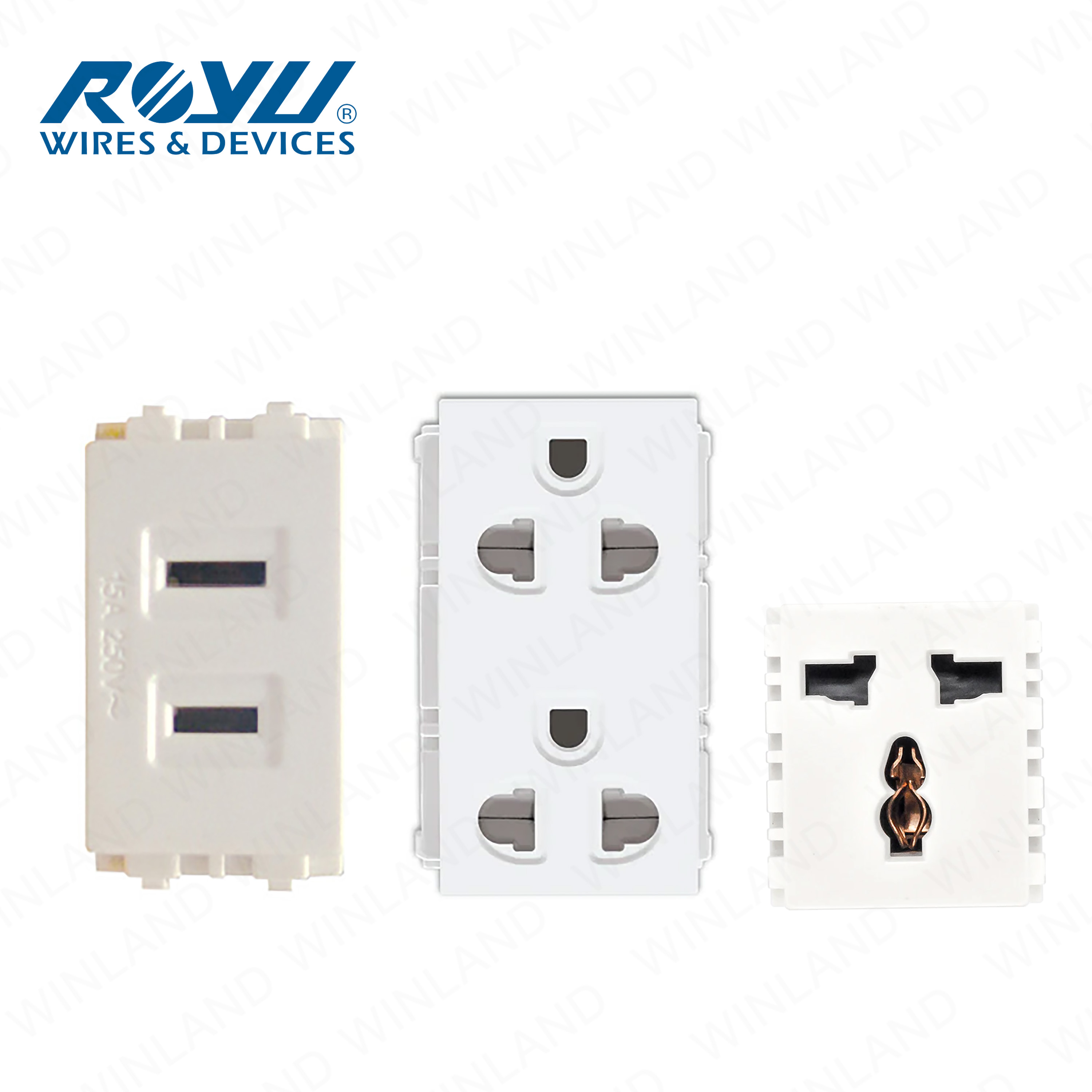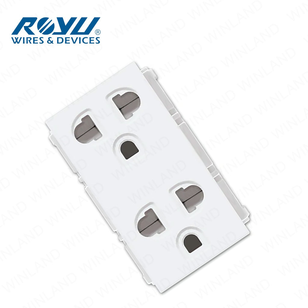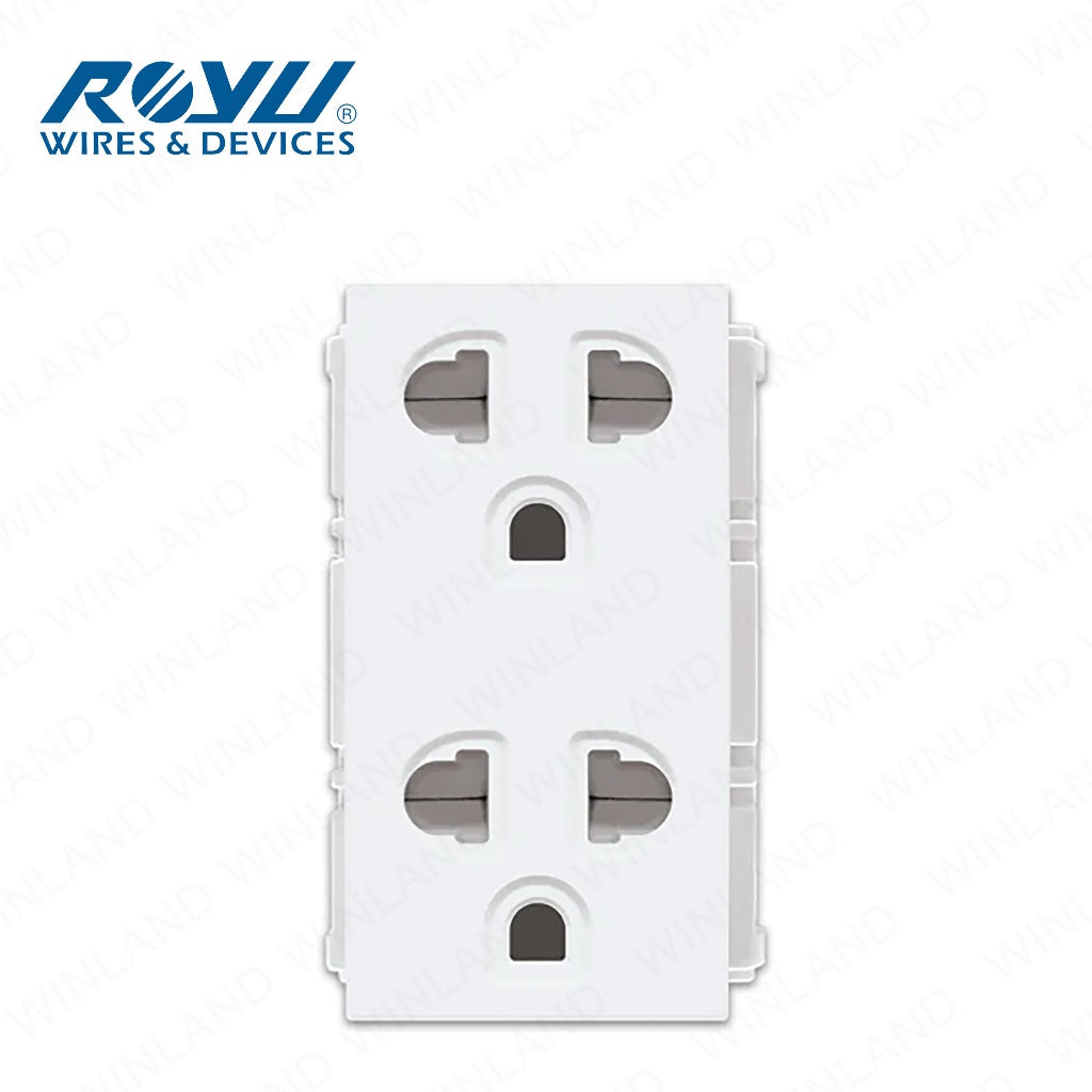 Royu by Winland Wide Series Flat Pin, International Outlet, Duplex Universal Outlet with Ground
