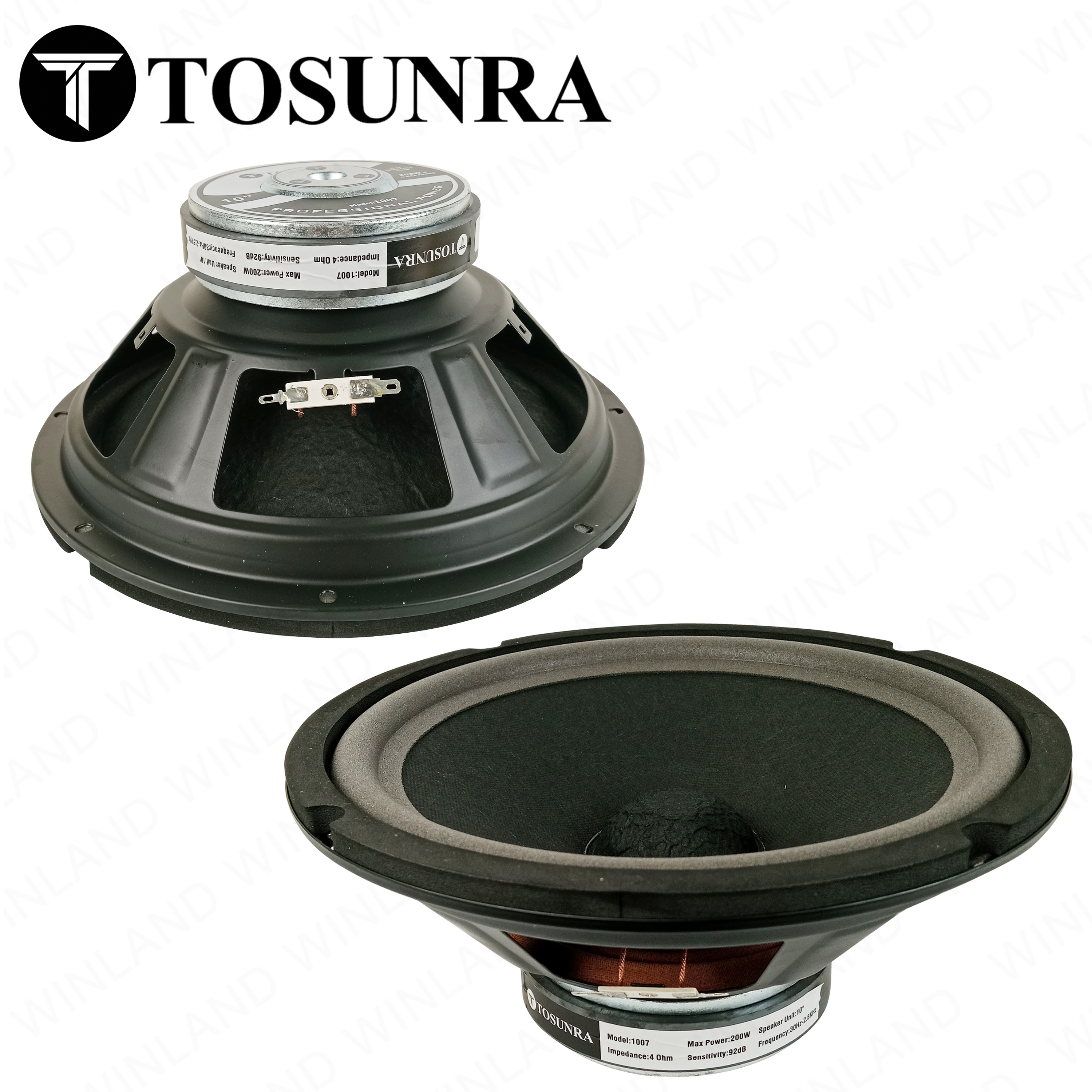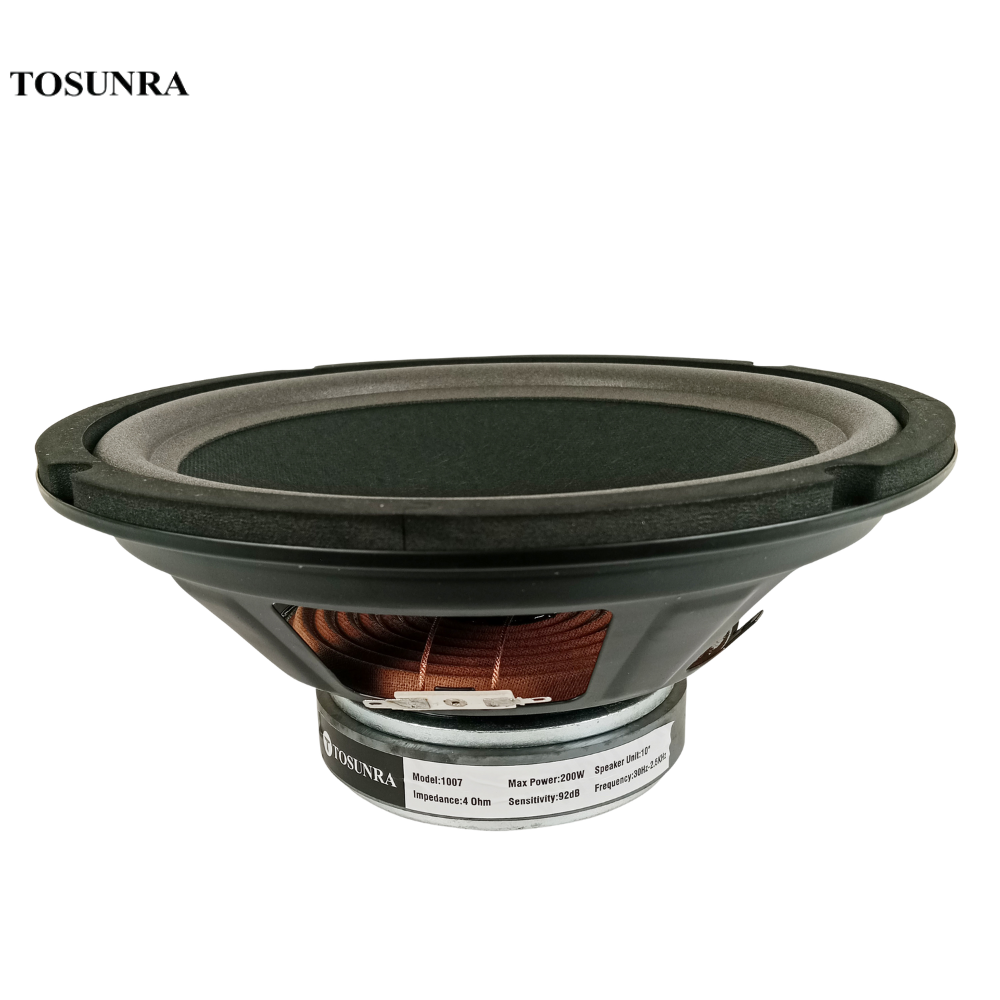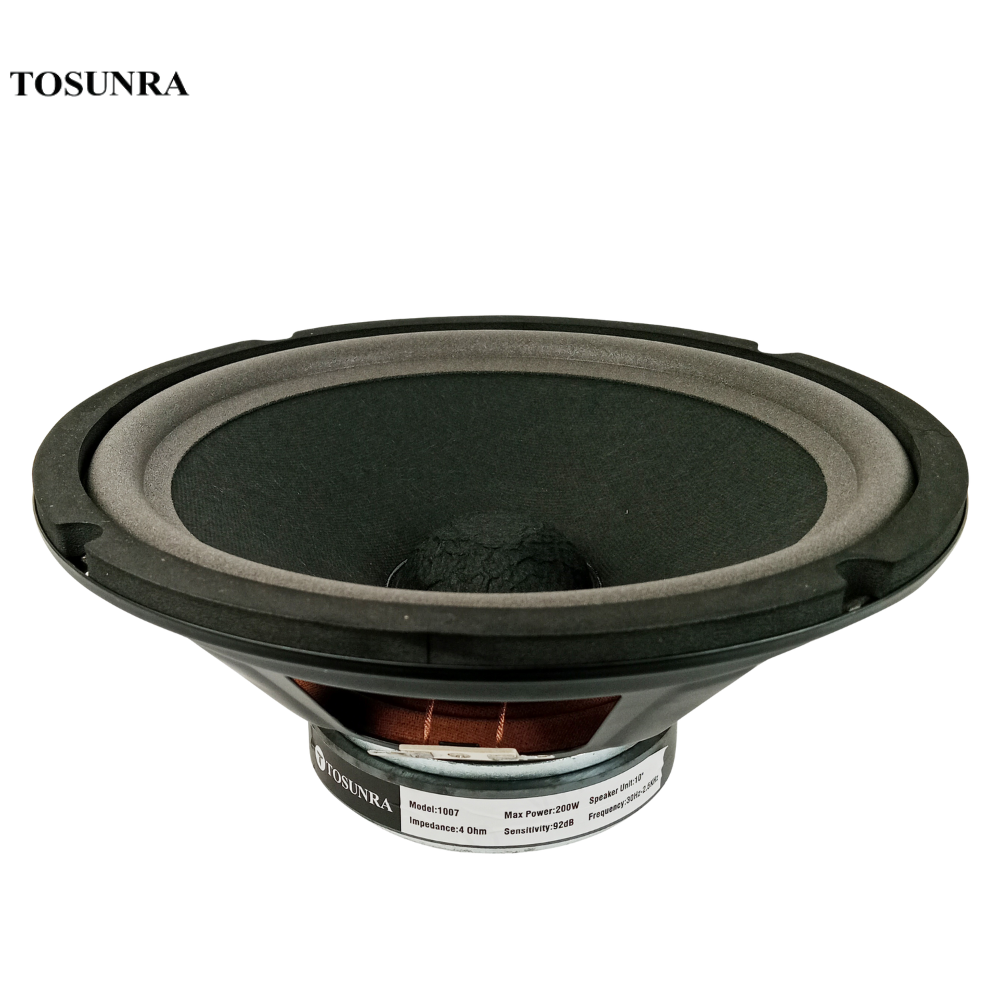 Tosunra 10" Woofer Speaker Unit (TOS-1007) is a compact 200W, 4Ω is a mid-range low-frequency driver designed for use in various audio applications,