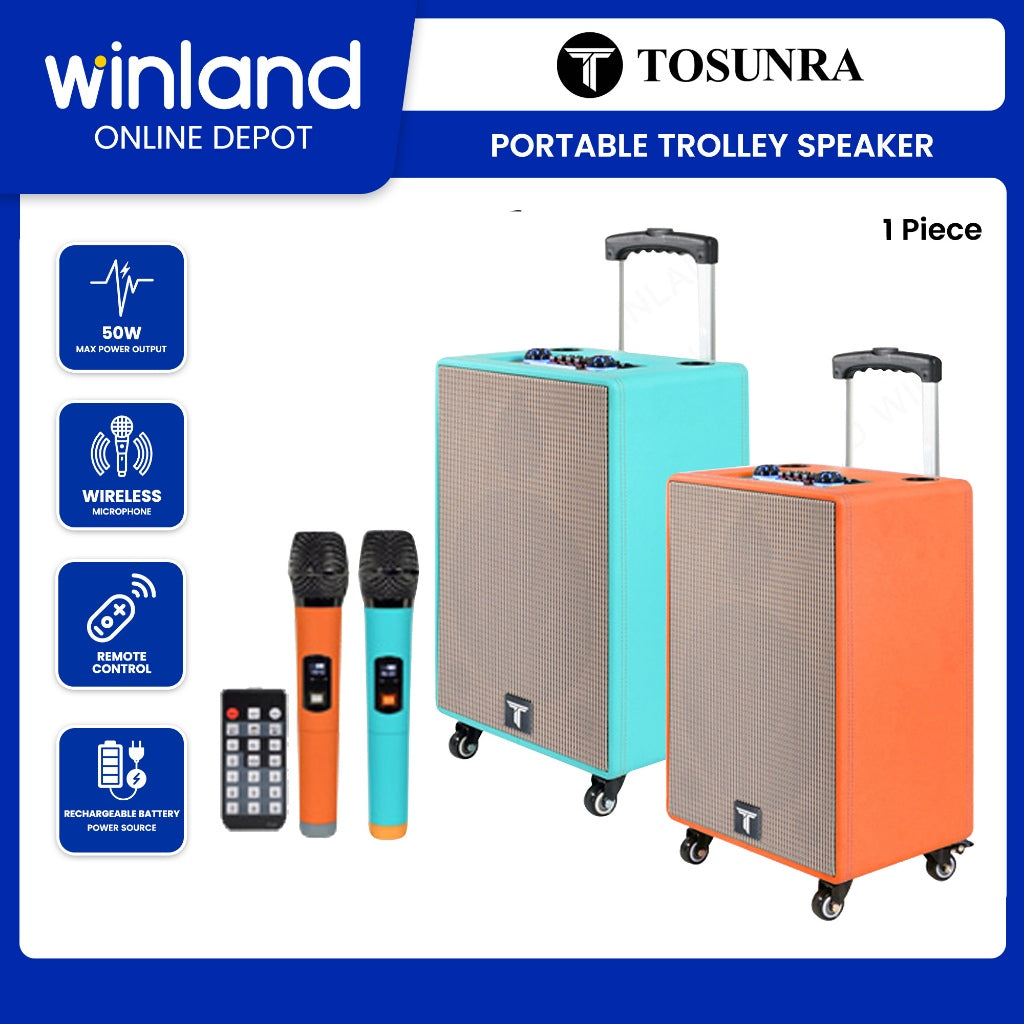 Tosunra by Winland 10inch Active Portable Trolley Speaker Box 50W with Wireless Microphone TOS-SA-10