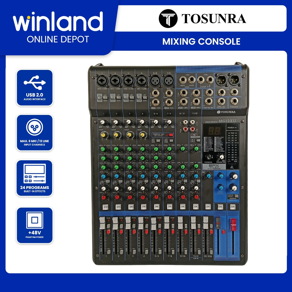 Tosunra 12 Channel Mixing Console (MG12XU-USB) is a compact mixing console designed for both live sound and studio use. It offers multiple
