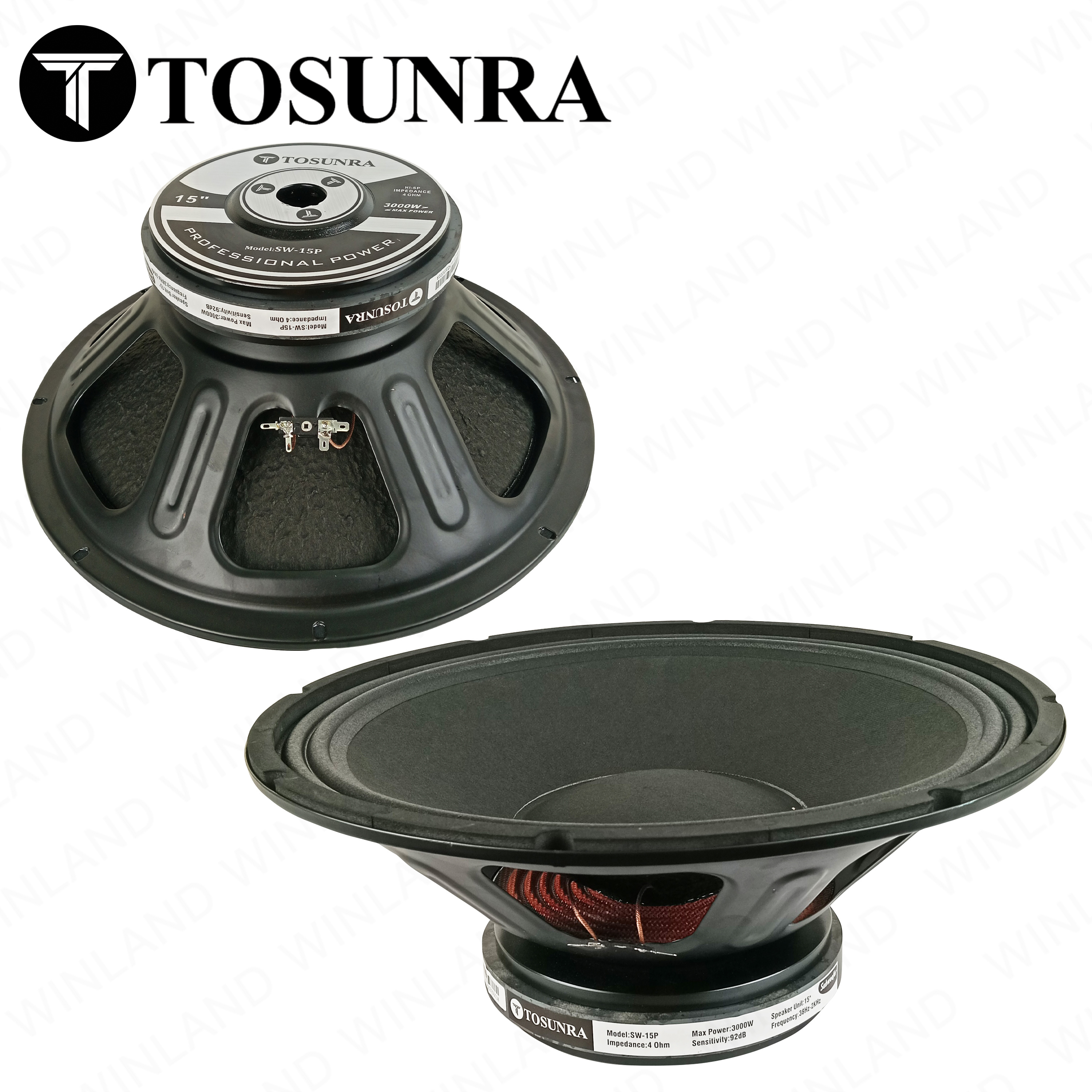 Tosunra by Winland 15-inch High Performance Subwoofer Speaker Unit w/ Iron Frame 3000W 4Ω TOS-SW-15P