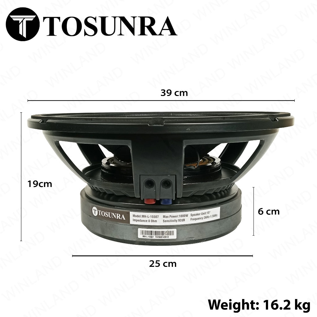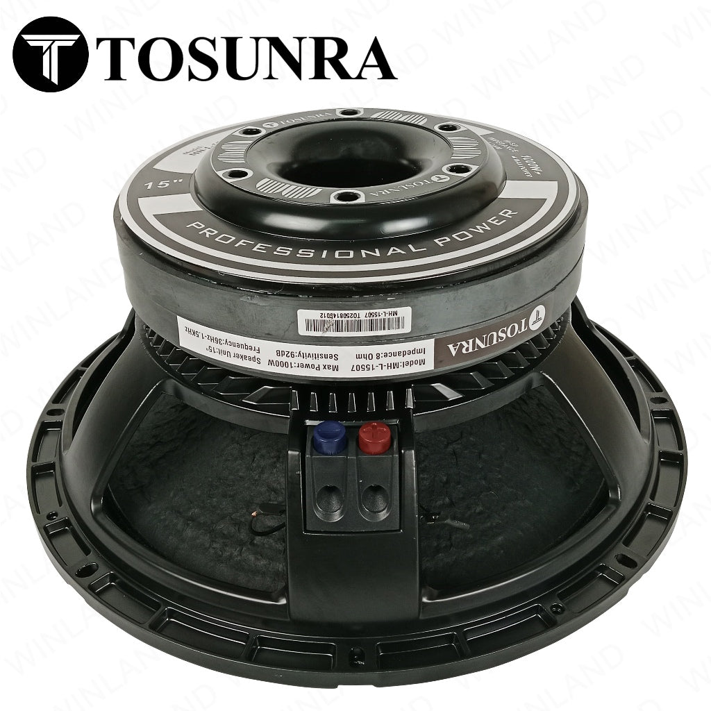 Tosunra 15" Double Magnet Speaker Unit 1000W 8Ohm (MH-L15507) is a 15-inch double magnet speaker that delivers powerful and clear sound with a 1000W power
