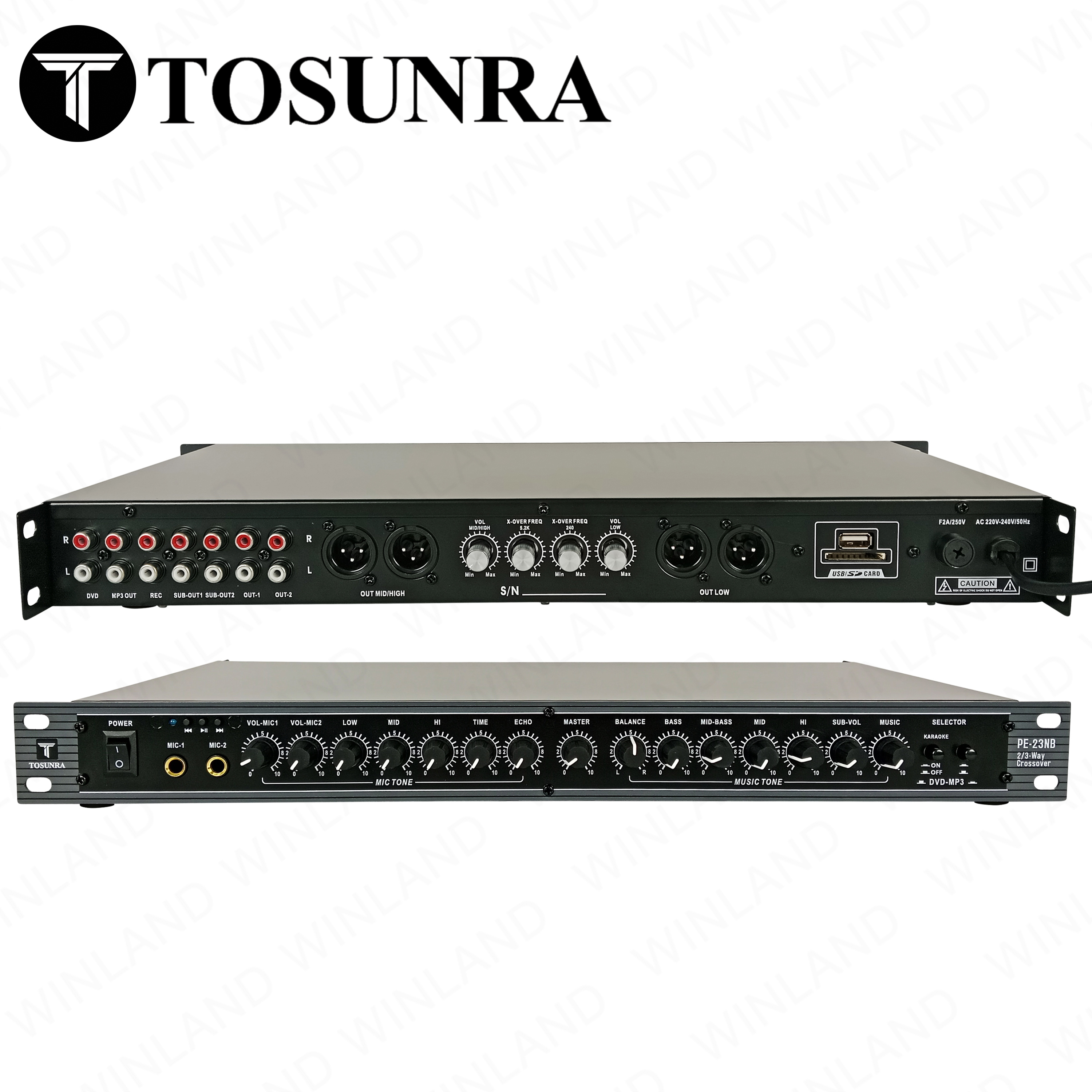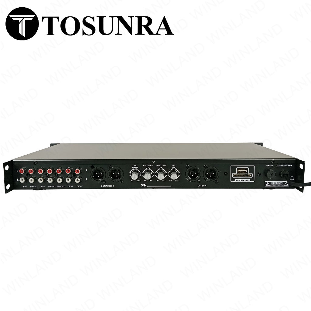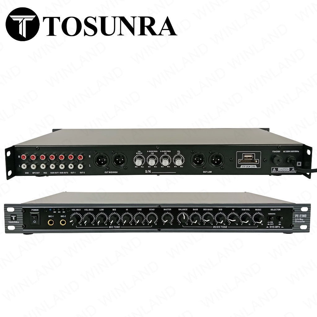 Tosunra Crossover Bluetooth, USB Function 2/3way with Sub Out (PE‑23NB) is a professional stereo pre-amplifier and electronic crossover with built-in Bluetooth, USB,