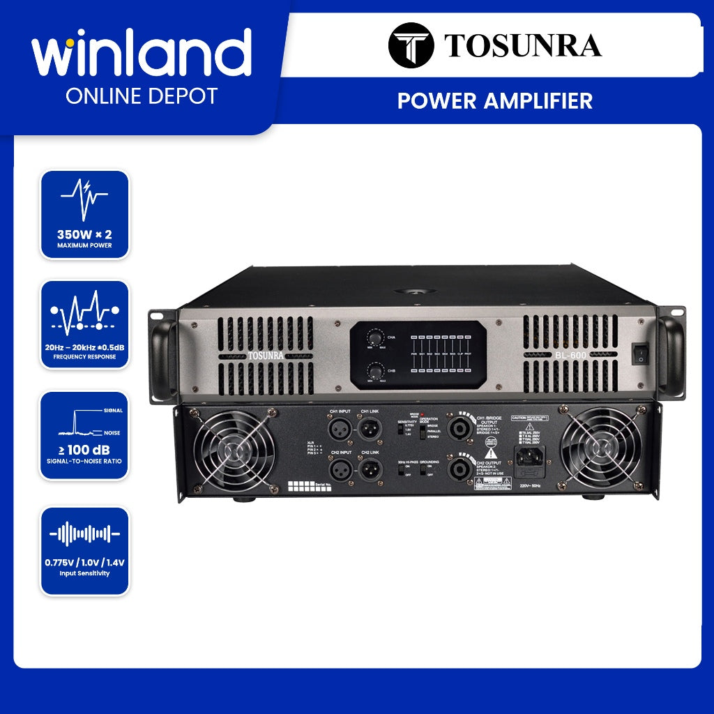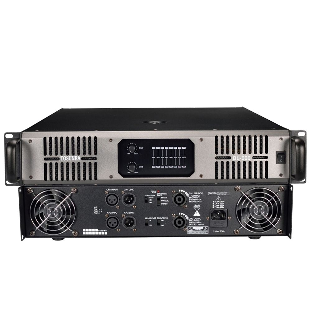 Tosunra Power Amplifier 350W*2 8ohm (BL-600) is a strong and reliable unit that delivers clear sound for professional or home use. It has stereo, parallel, and