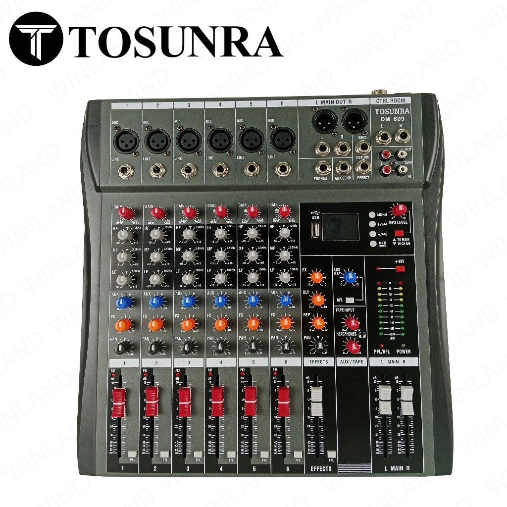Tosunra by Winland 6 Mono-Channels Mixing Console Input Mixer with Digital Effects & USB TOS-DM609