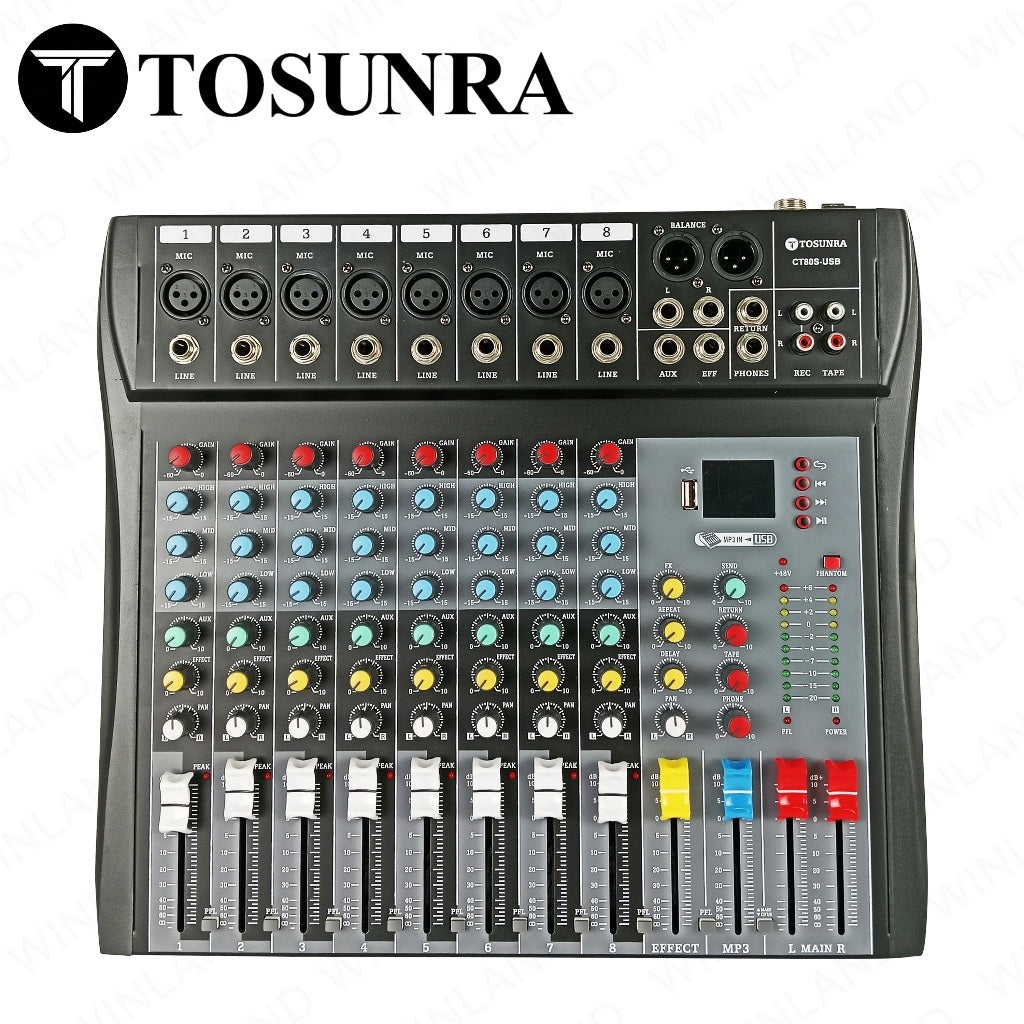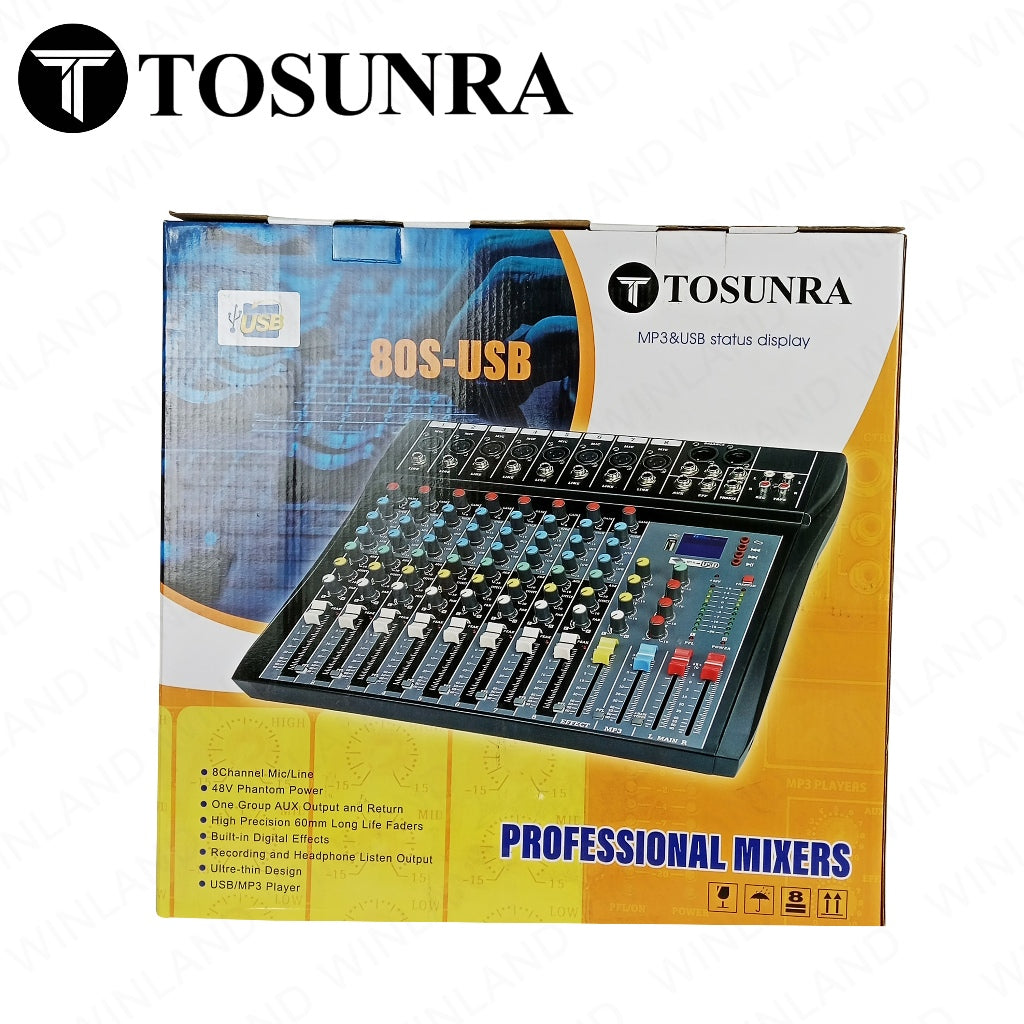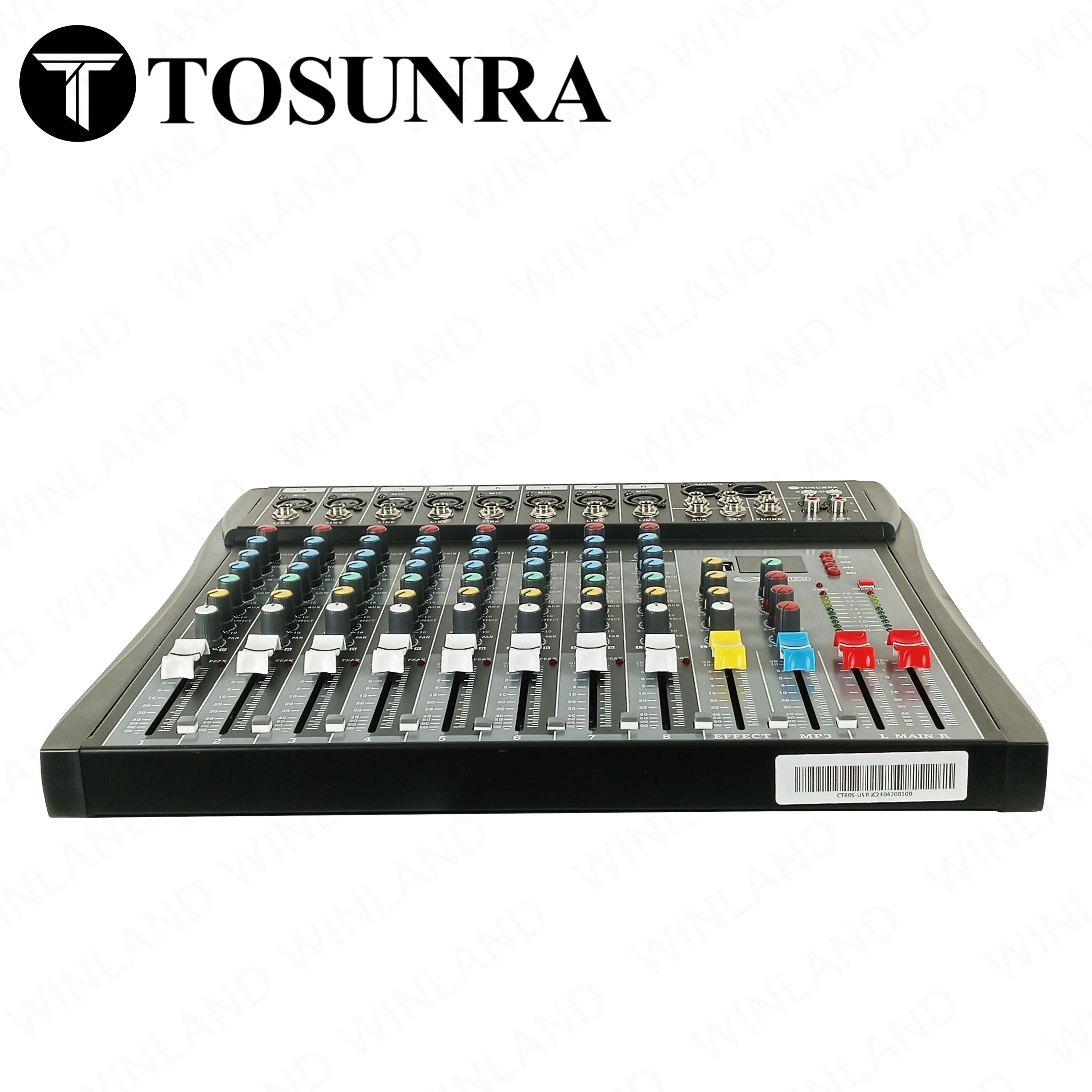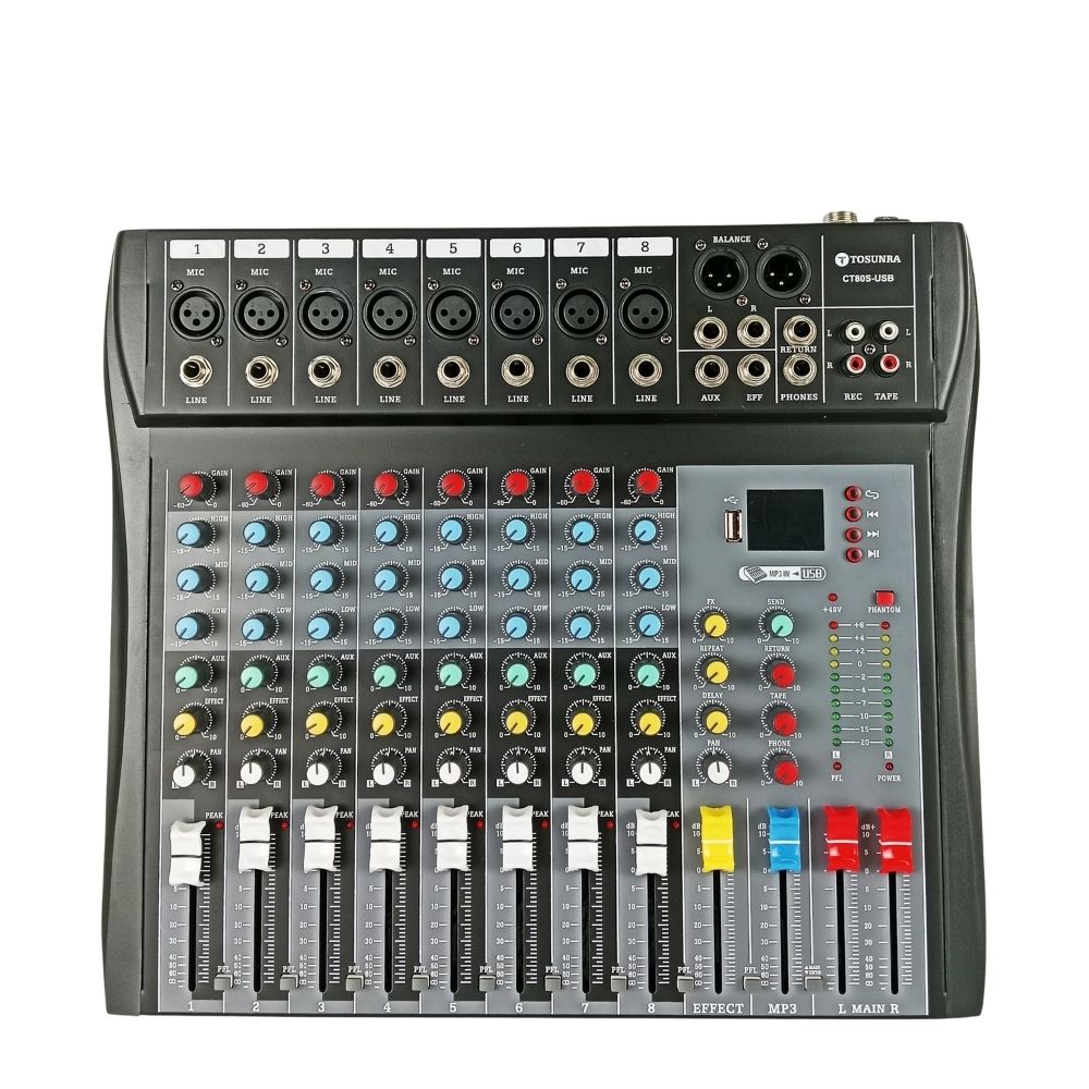 Tosunra Professional Audio Mixer 8-Channel (CT80S-USB) is a multi-channel mixer designed for DJs, live performances, karaoke, and studio use, featuring XLR and line