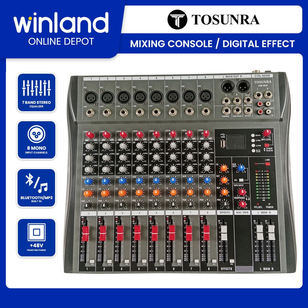 Tosunra by Winland 8 Mono-Channels Mixing Console Input Mixer w/ Digital Effects & USB, BT TOS-DM809