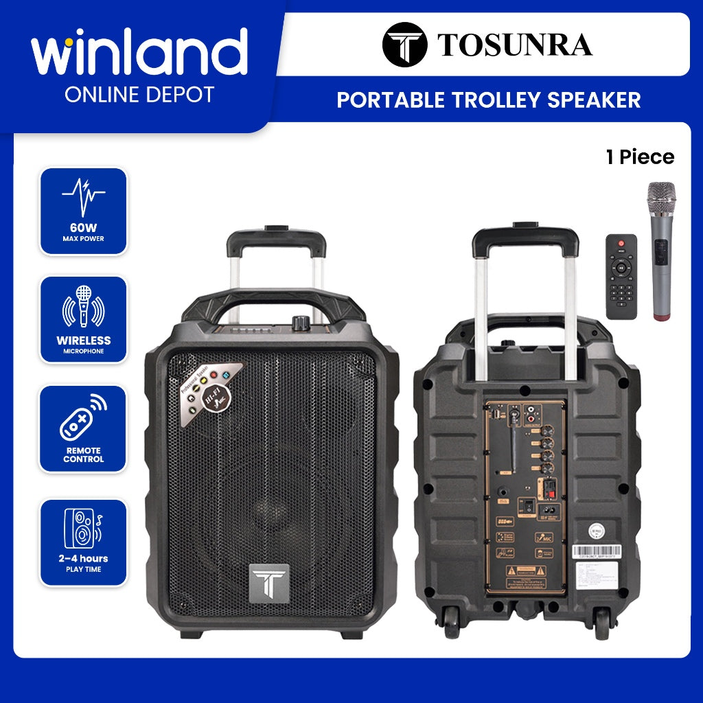 Tosunra by Winland 8inch Active Portable Trolley Speaker Box 60W w/ 1PC Wireless Microphone TOS-N2-8